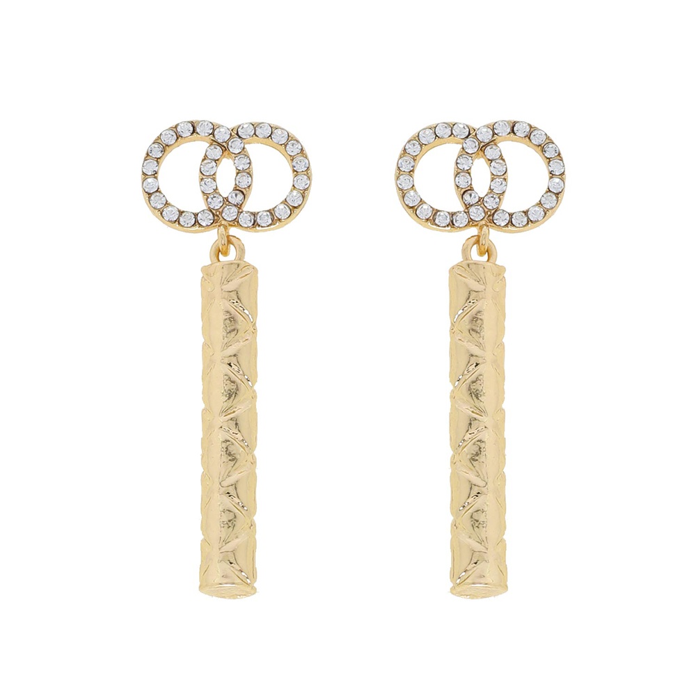 2-TIER CRYSTAL RHINESTONE PAVE INTERLOCKING CIRCLE LINK LONG DROP EARRINGS