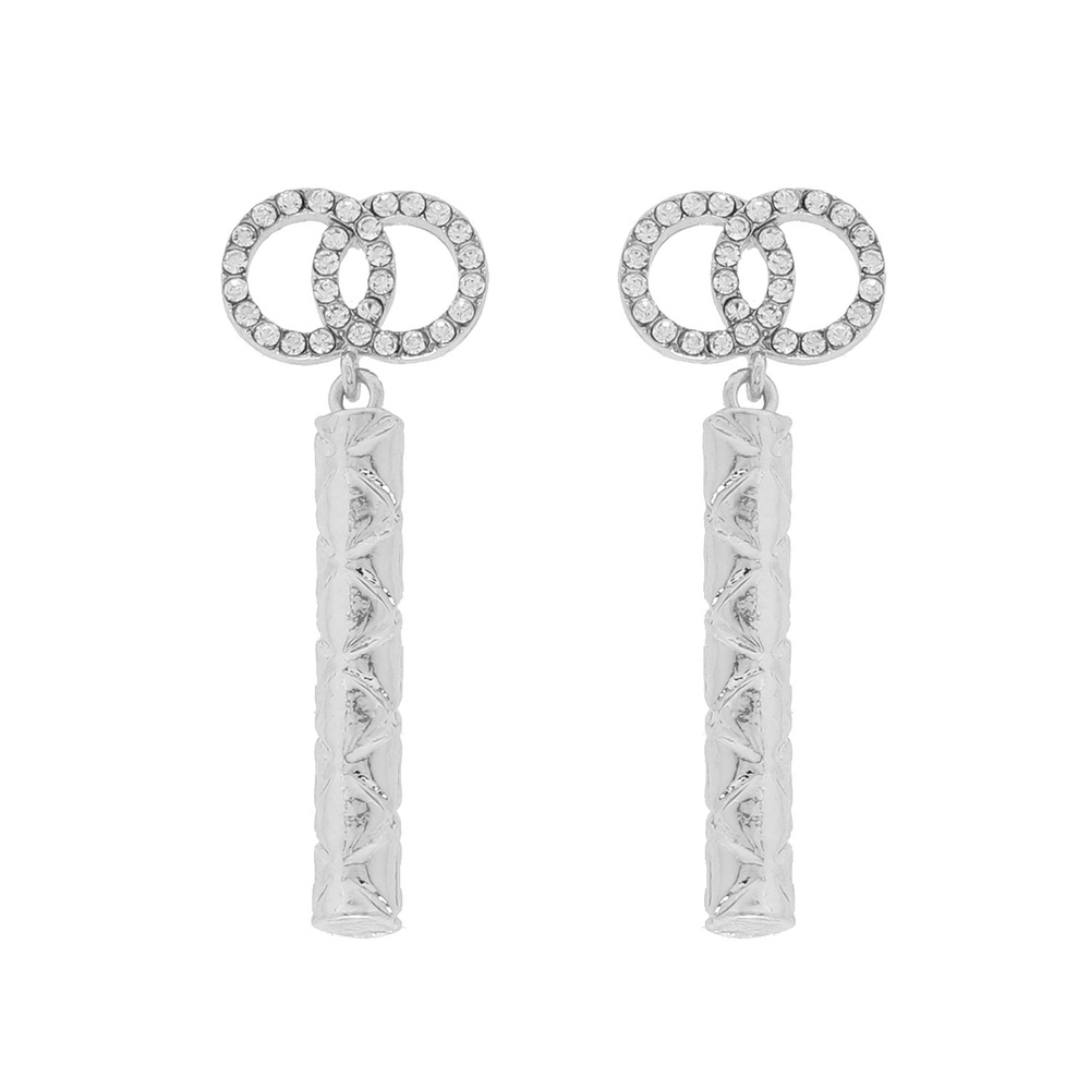 2-tier Crystal Rhinestone Pave Interlocking Circle Link Long Drop Earrings