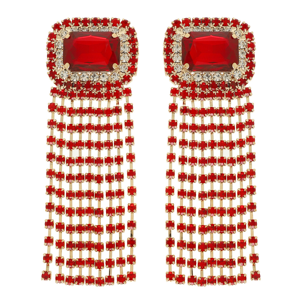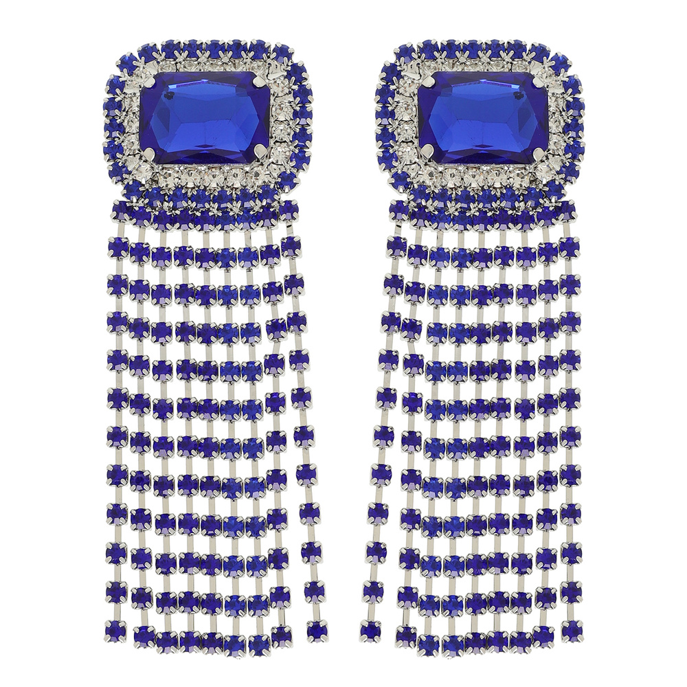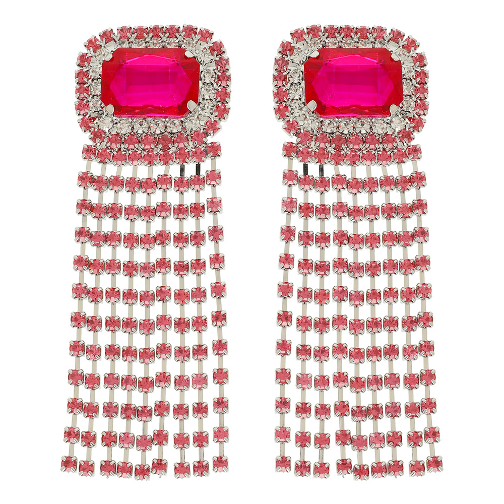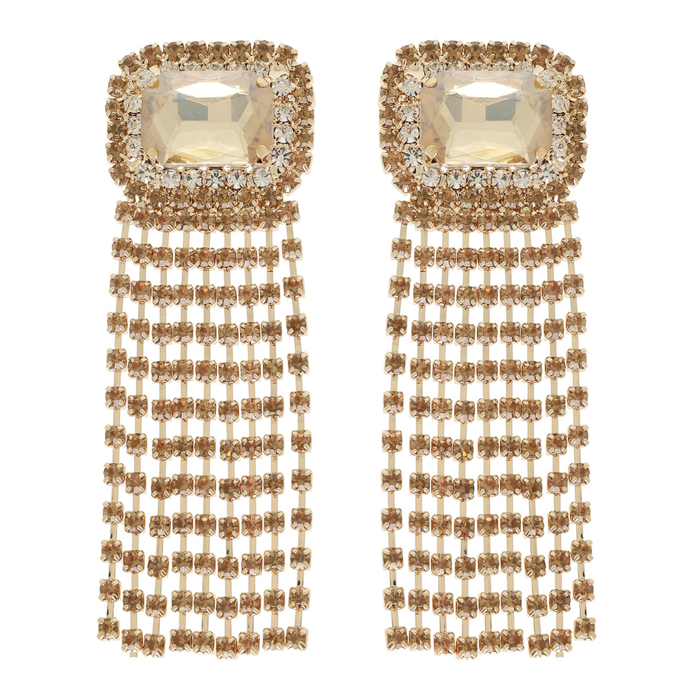 TWO-TIER RHINESTONE PAVE EMERALD-CUT CRYSTAL FRINGE POST EARRINGS