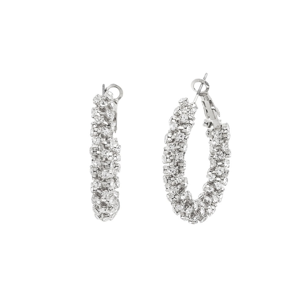 RHINESTONE PAVE TUBE HOOP EARRINGS IN SILVER TONE METAL