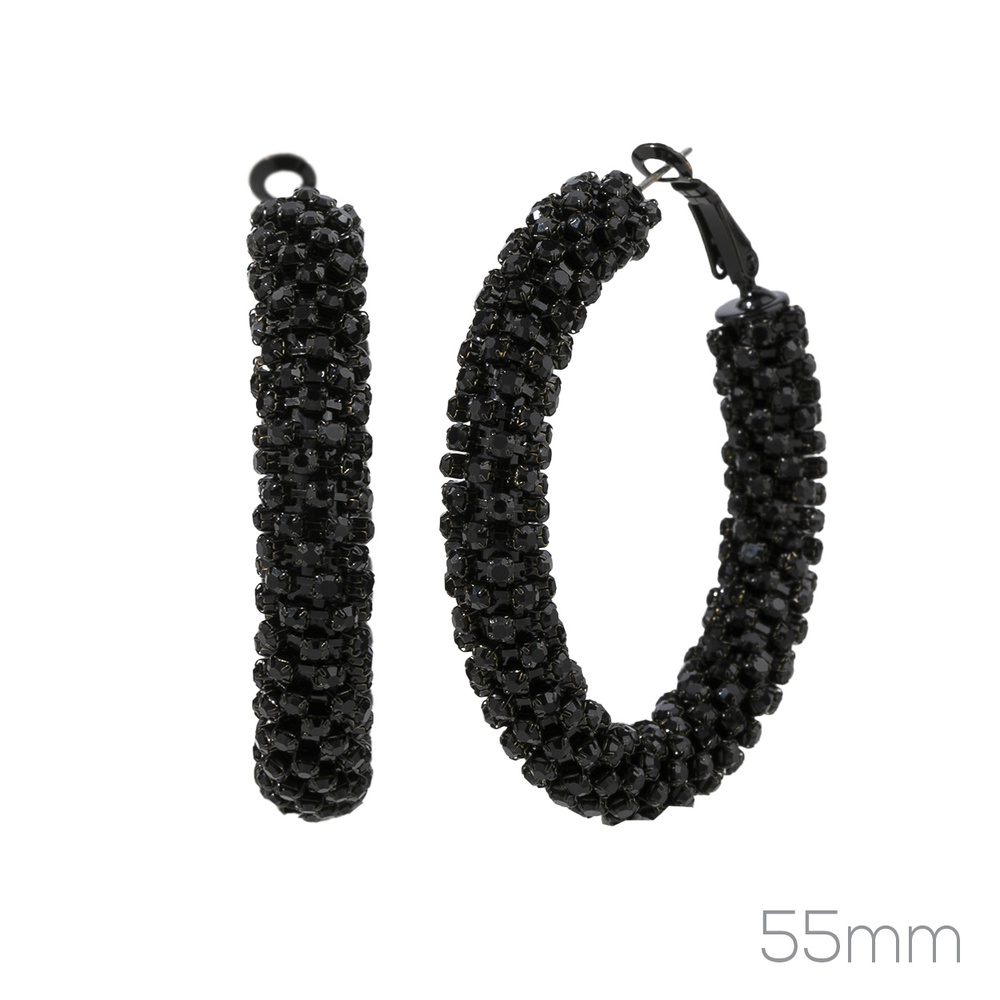 RHINESTONE PAVE TUBE HOOP EARRINGS