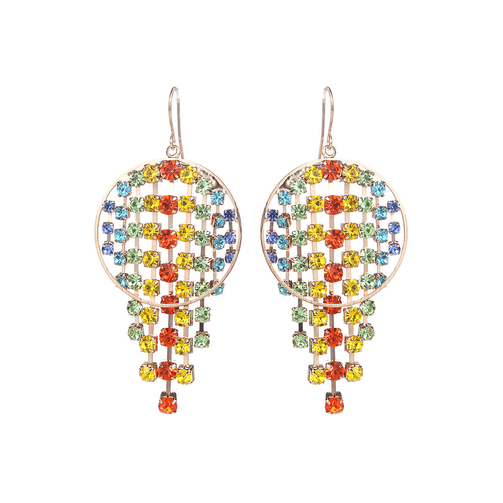 CIRCLE W/ FRINGE RHINESTONE EARRING