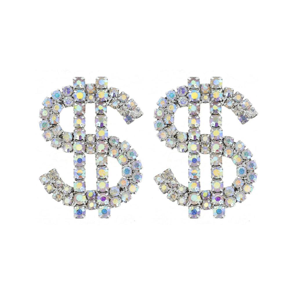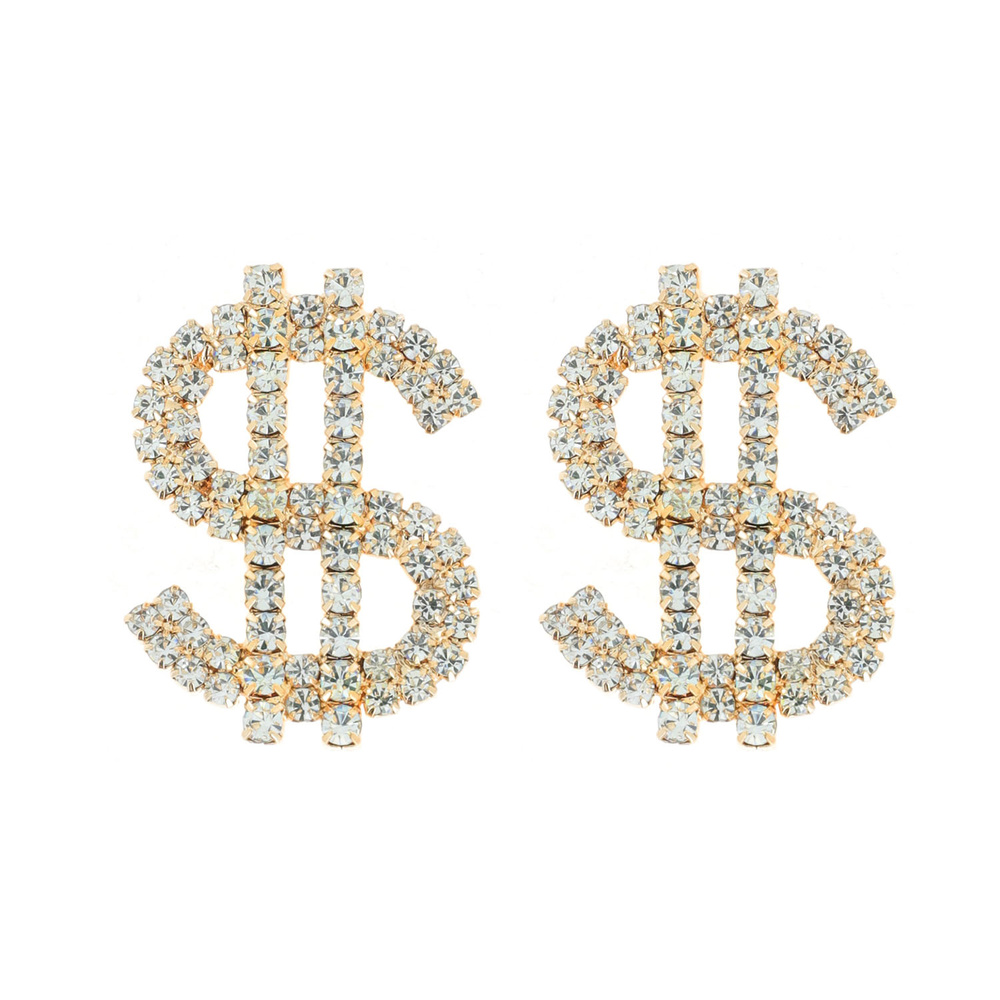 CRYSTAL RHINESTONE DOLLAR SIGN EARRINGS