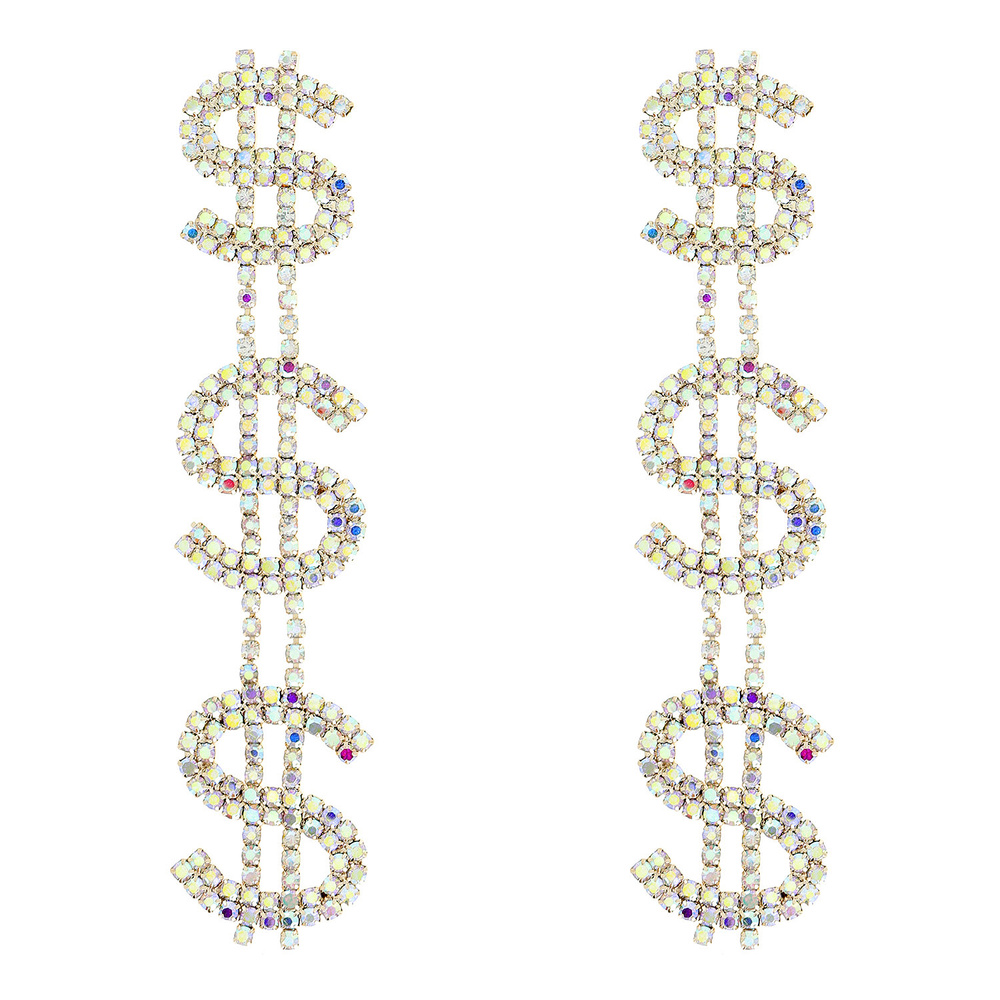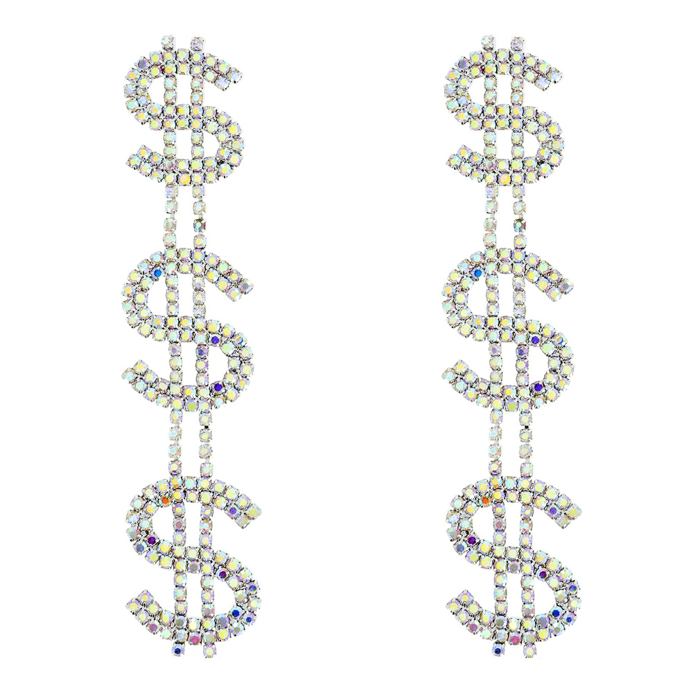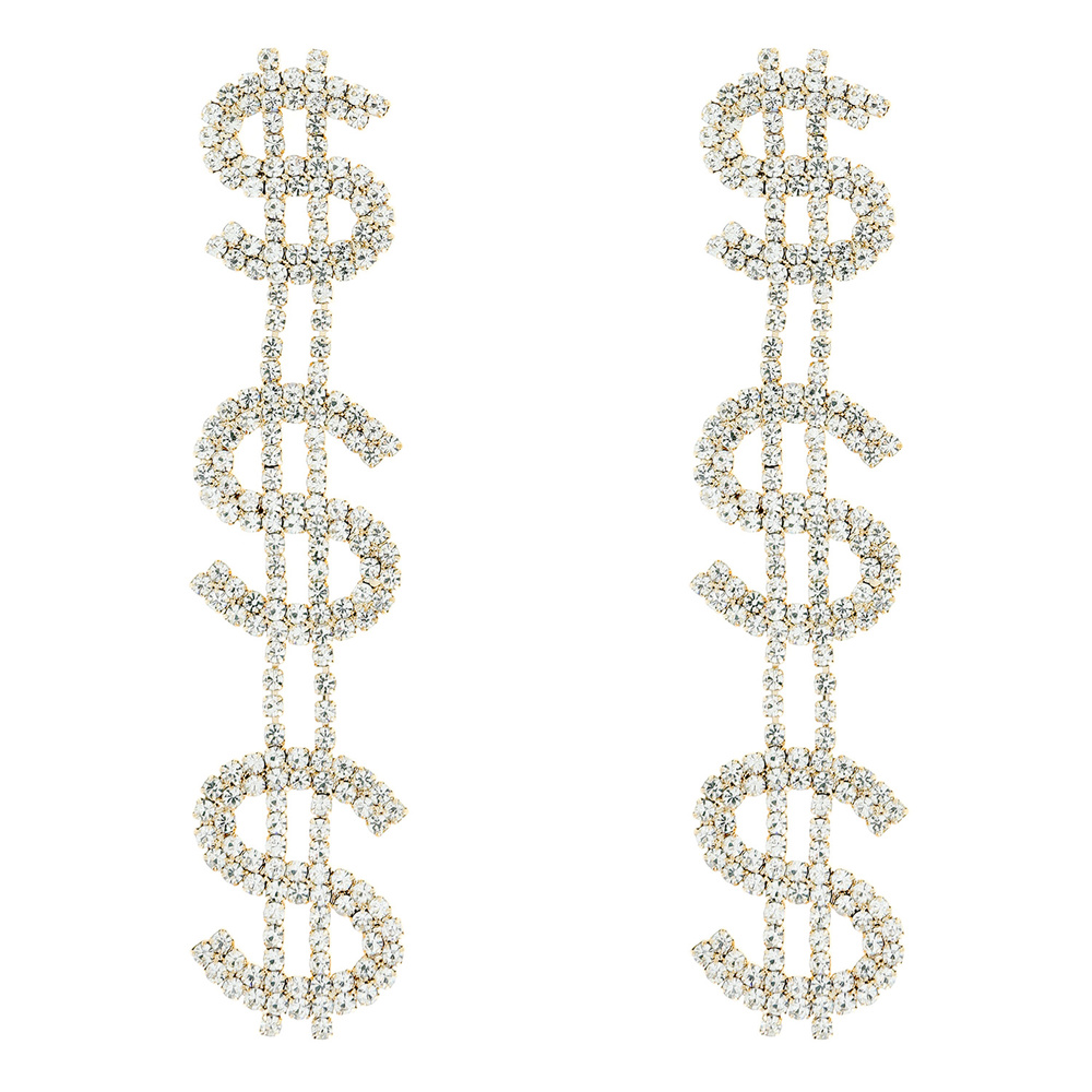 RHINESTONE DOLLAR SIGN DROP EARRINGS