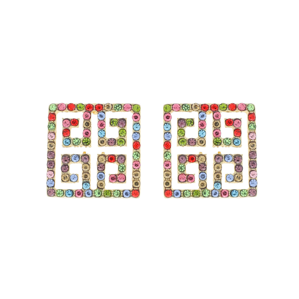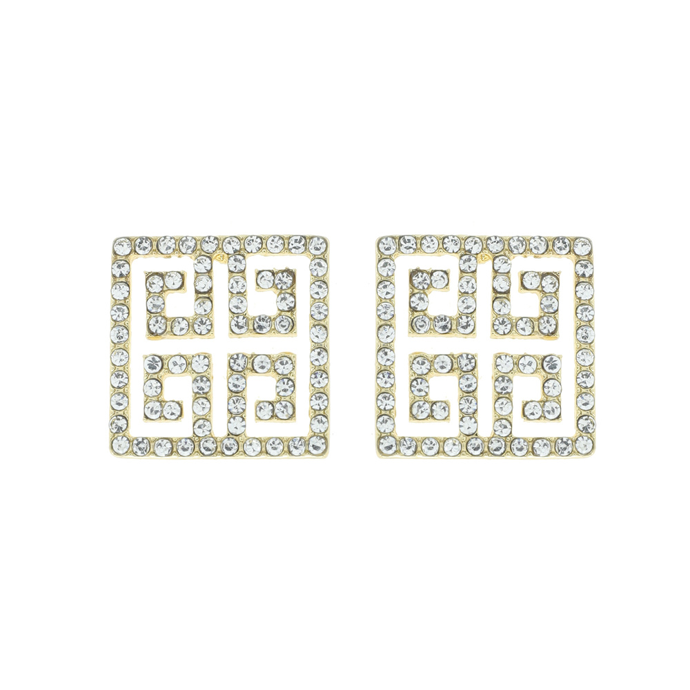 CRYSTAL RHINESTONE SQUARE ANCIENT GREEK KEY STUD EARRINGS