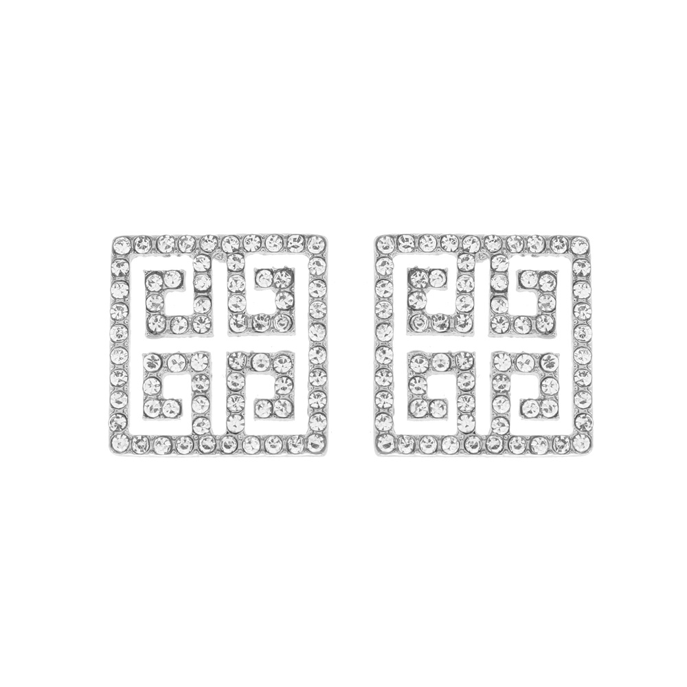 Crystal Rhinestone Square Ancient Greek Key Stud Earrings