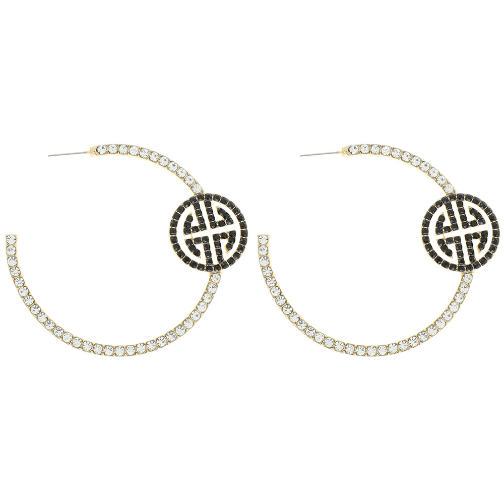 60MM CRYSTAL RHINESTONE ANCIENT GREEK KEY HOOP EARRINGS