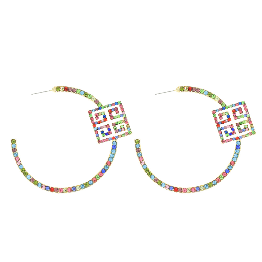 60mm Rhinestone Greek Symbol Hoop Earrings