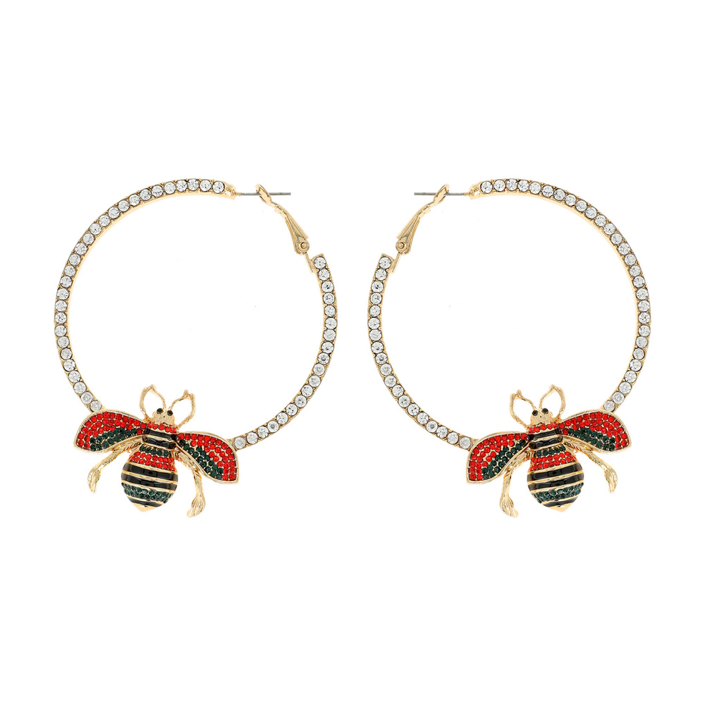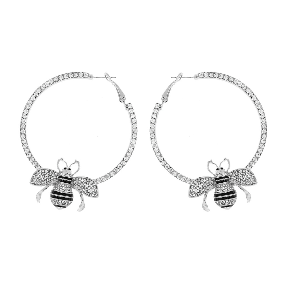 60mm Rhinestone Hoop With Bee Earrings