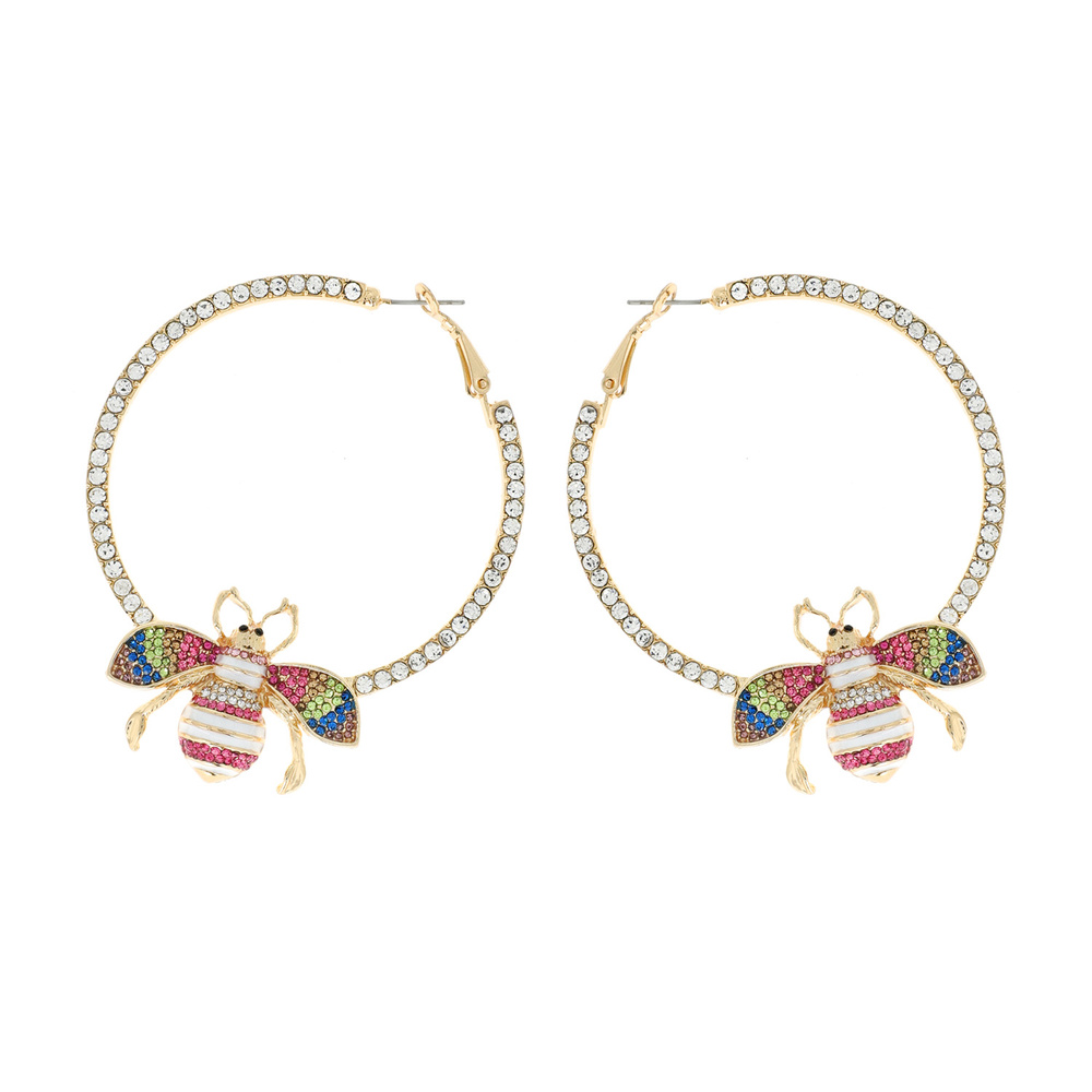 60MM RHINESTONE HOOP WITH BEE EARRINGS