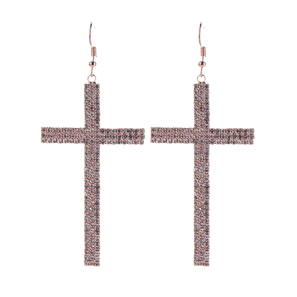 Crystal Rhinestone Cross Dangle Earrings