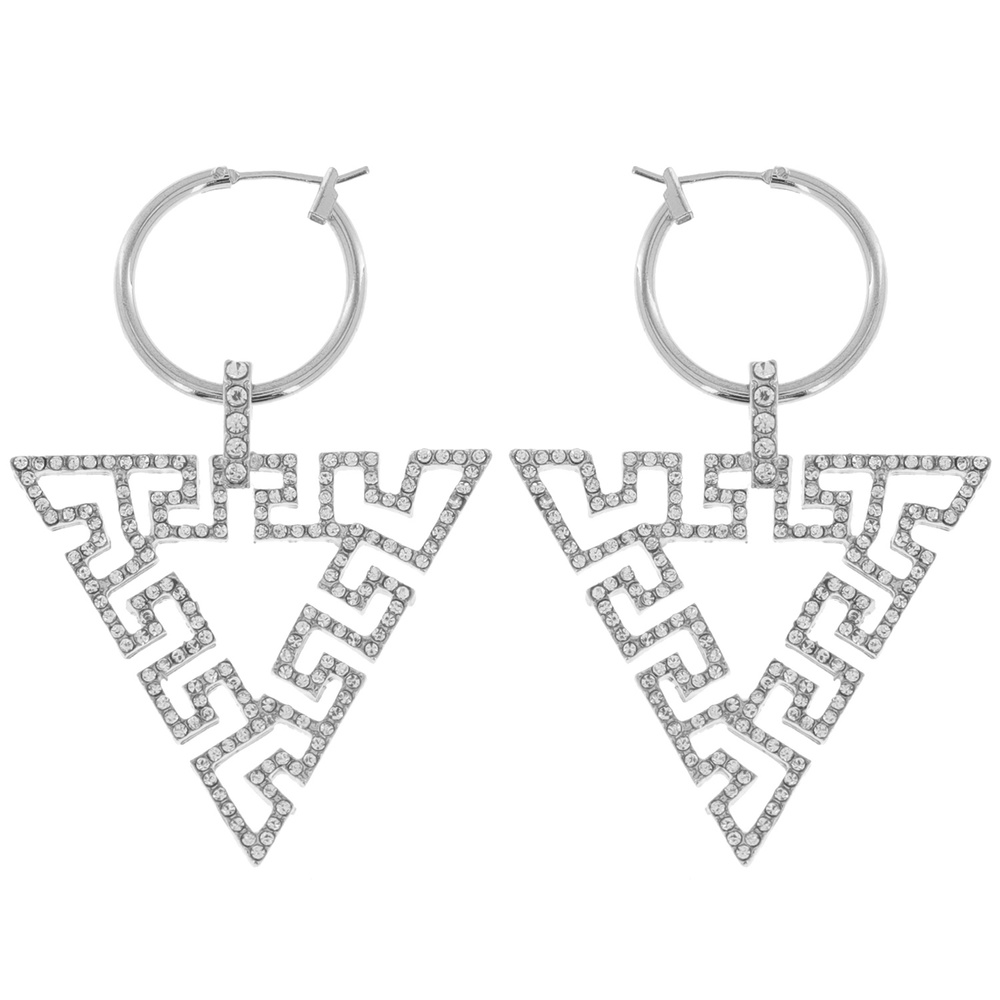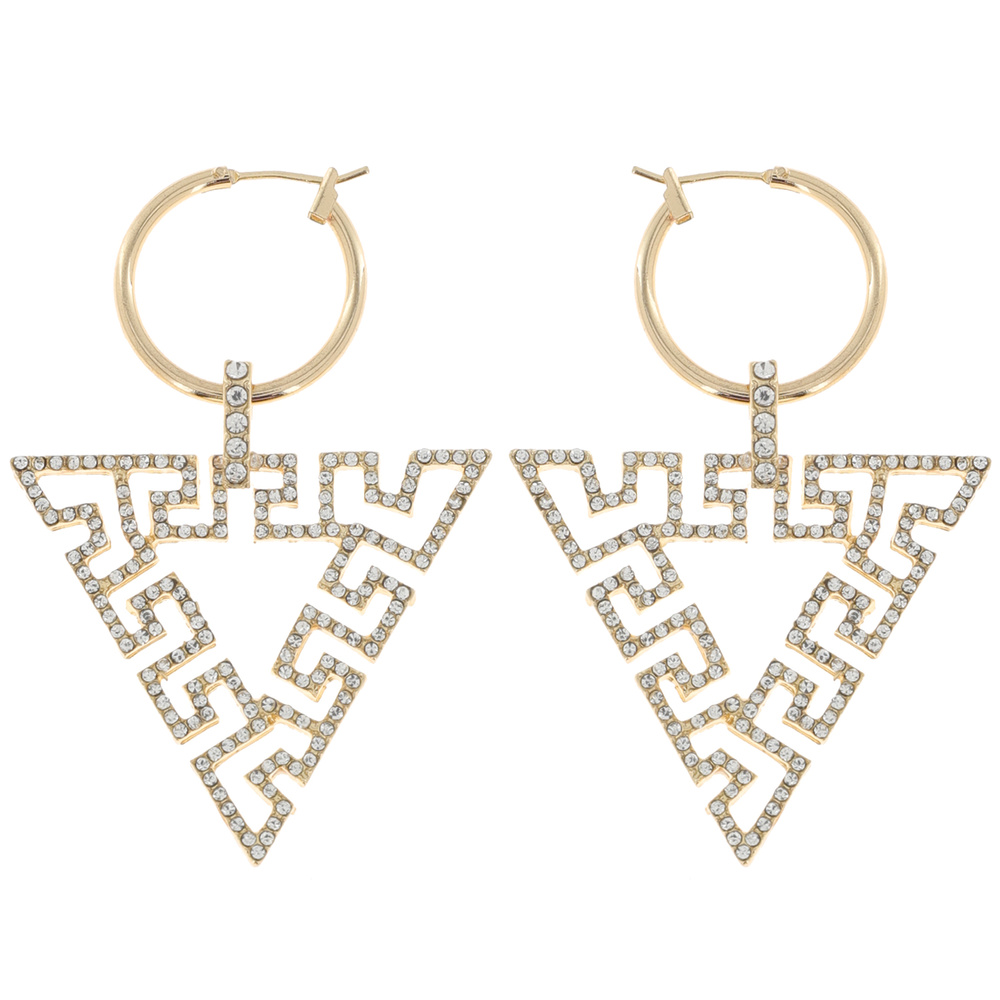Crystal Rhinestone Pave Greek Key Pattern Triangle Shaped Charm Hoop Earrings