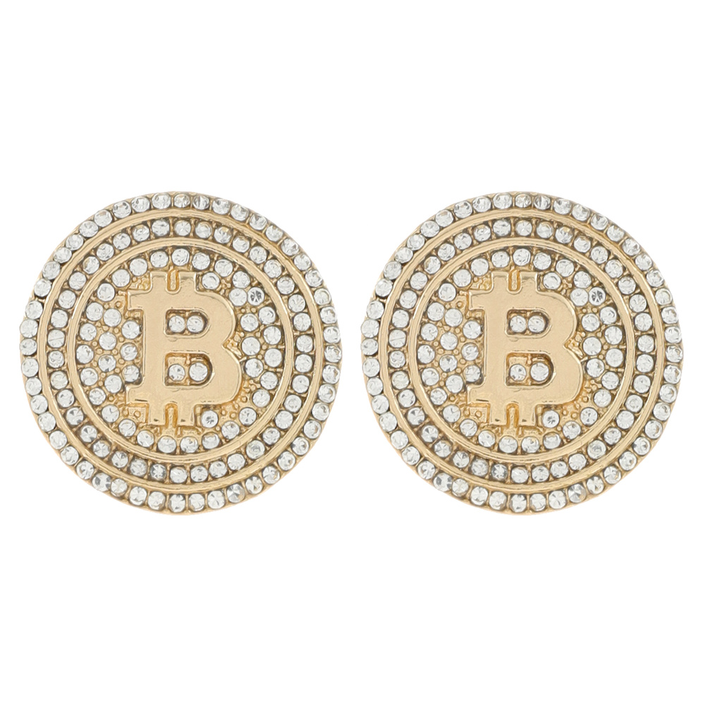 CRYSTAL RHINESTONE PAVE BITCOIN SIGN STUD EARRINGS