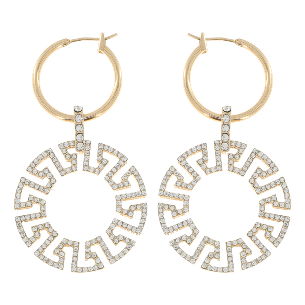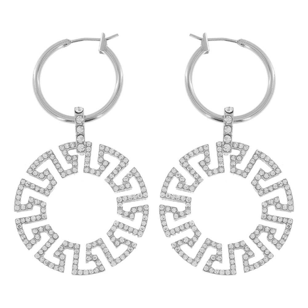 Crystal Rhinestone Pave Greek Key Pattern Charm Hoop Earrings