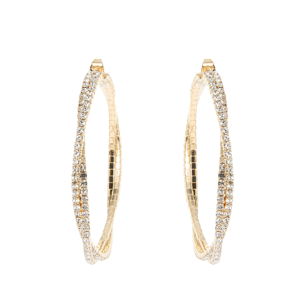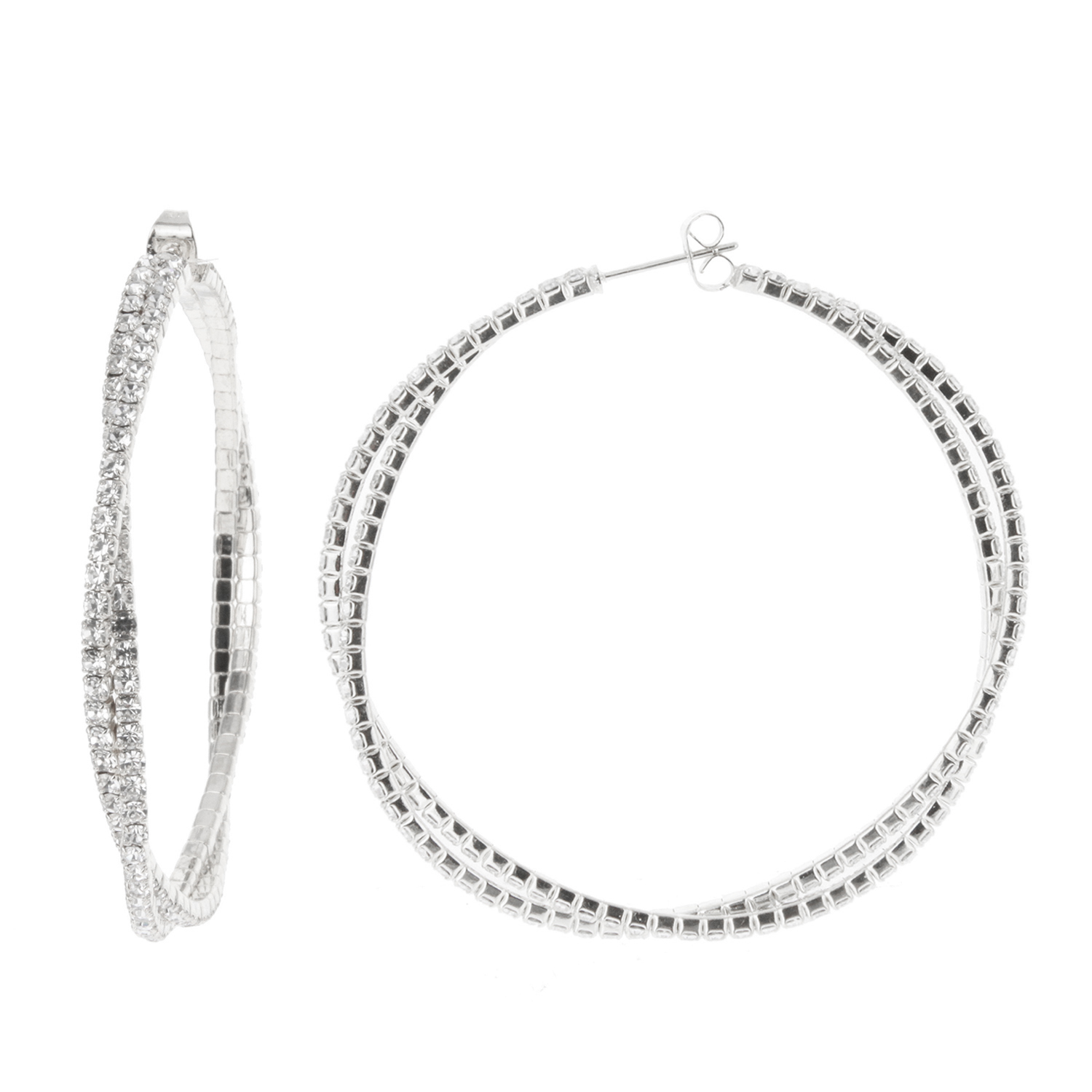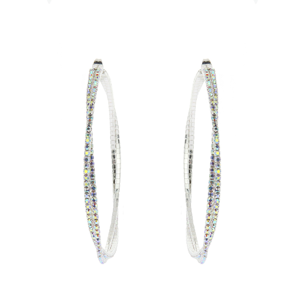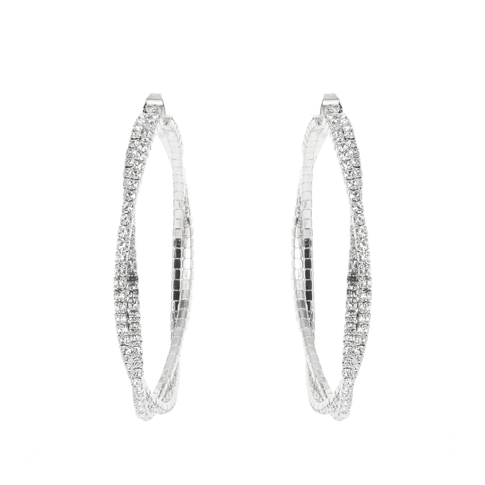 Large Rhinestone Pave Crossover Hoop Earrings