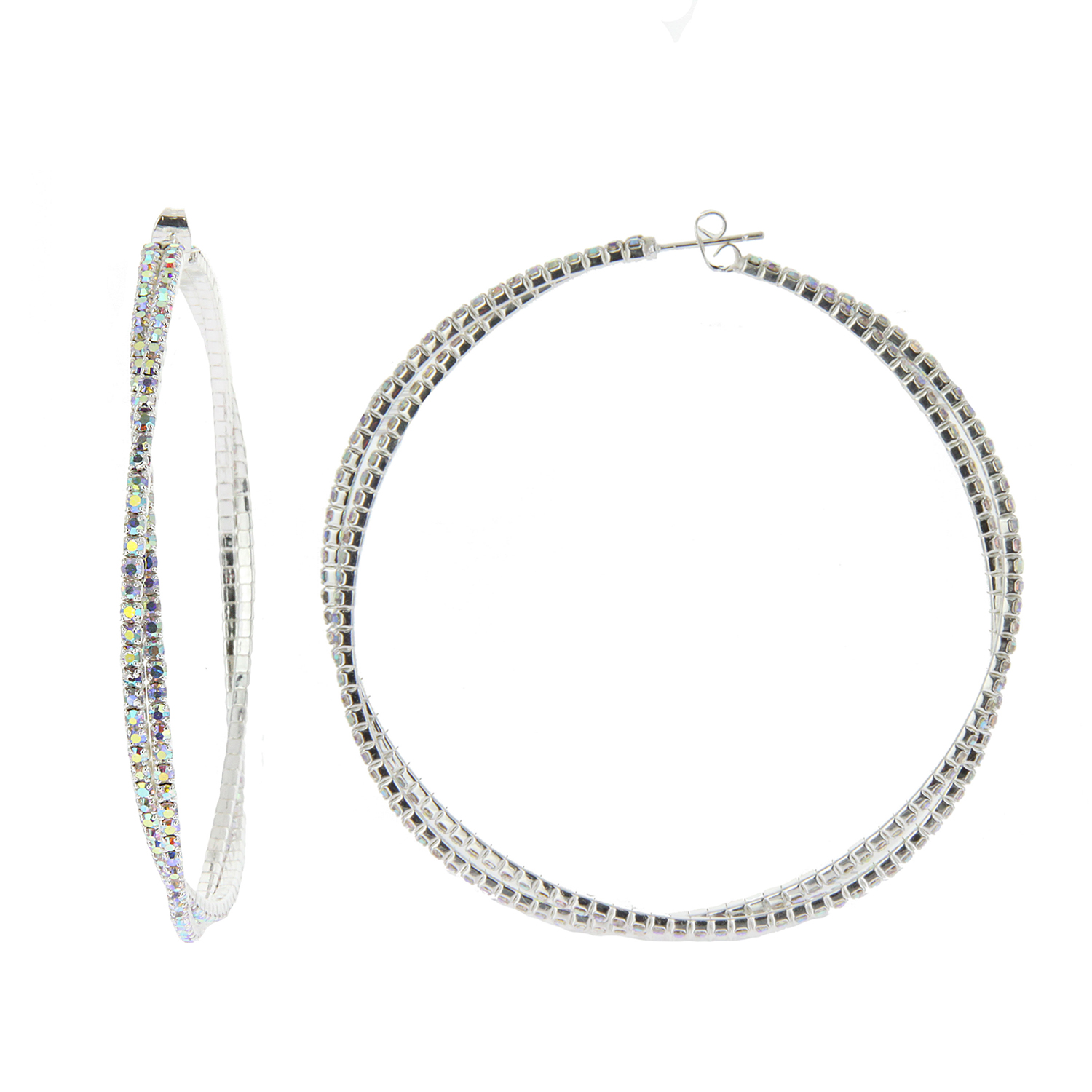 RHINESTONE PAVE CROSSOVER HOOP POST EARRINGS (70MM)
