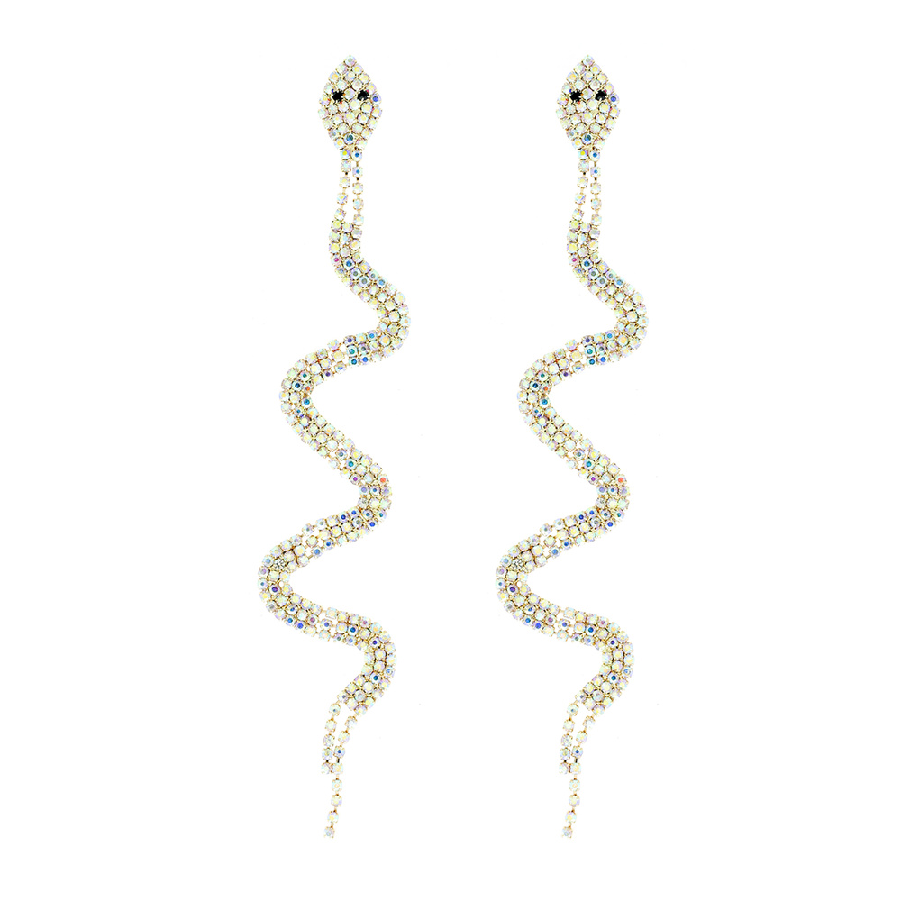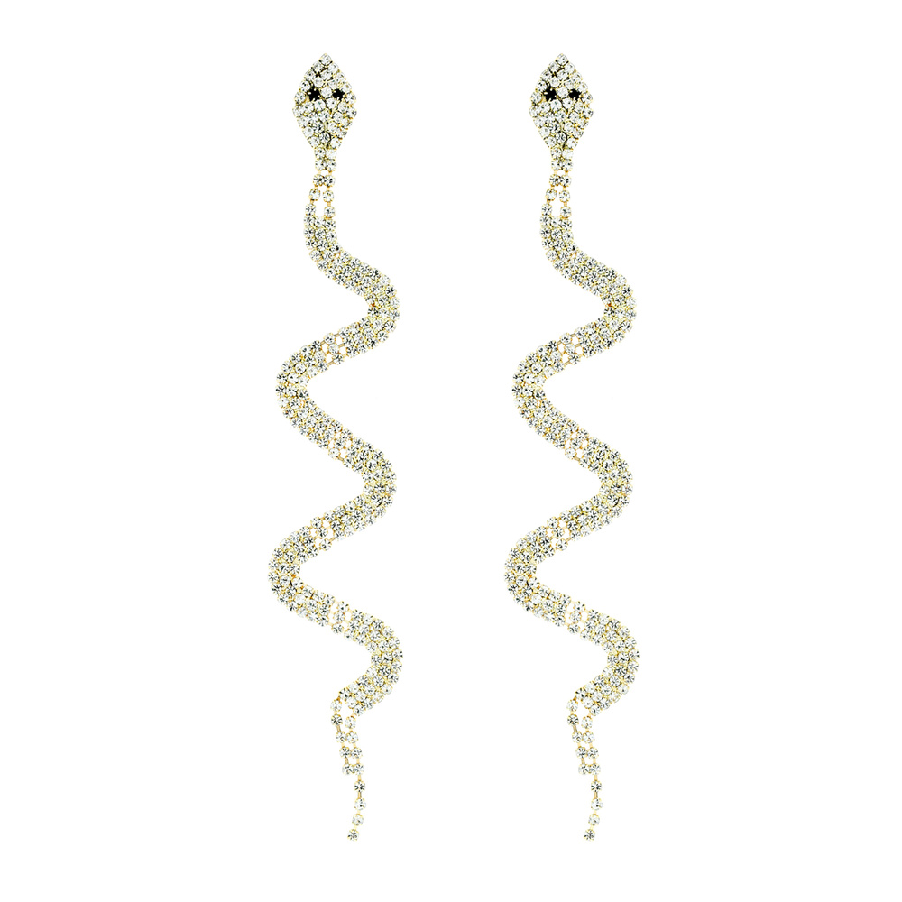 RHINESTONE SNAKE DANGLE DROP POST EARRINGS