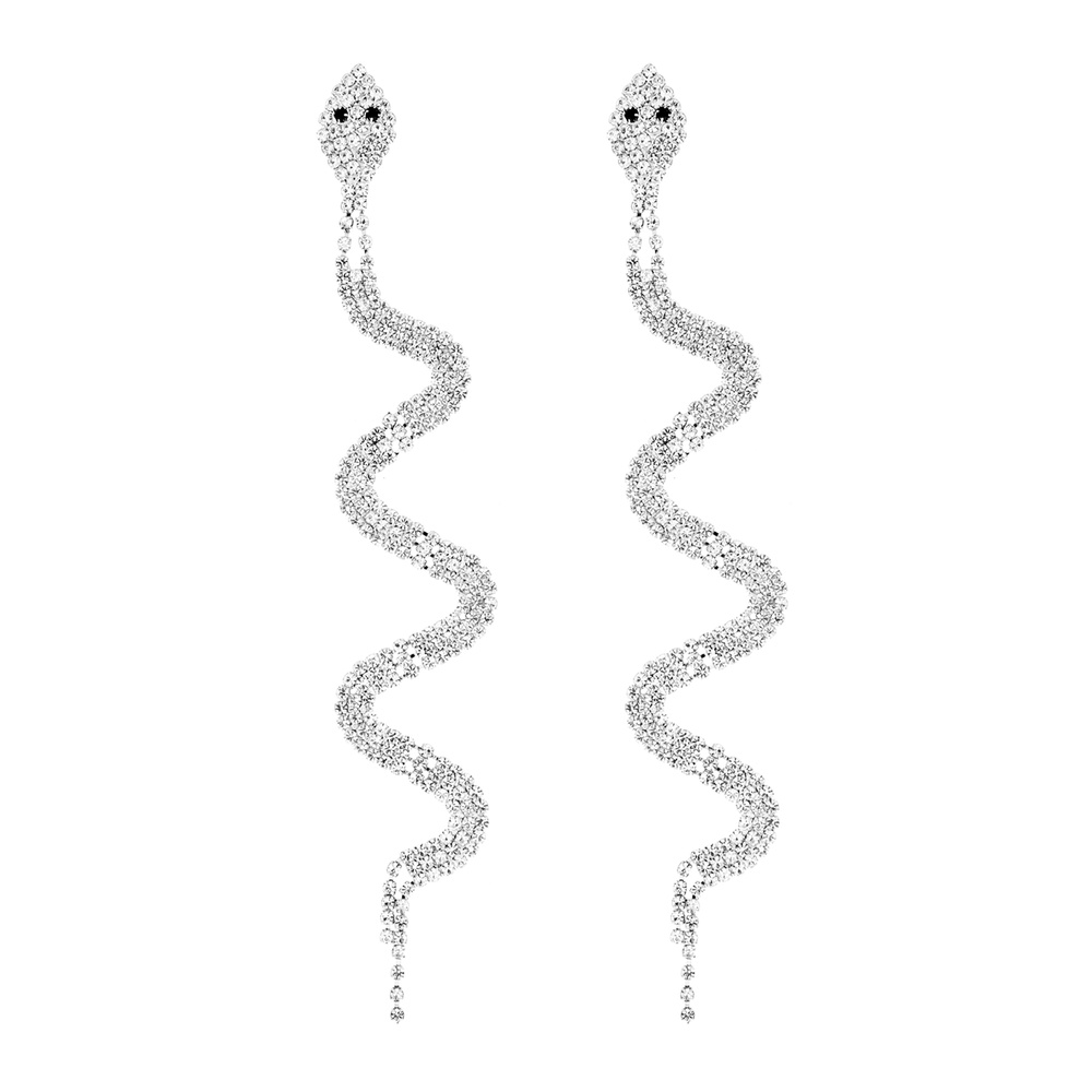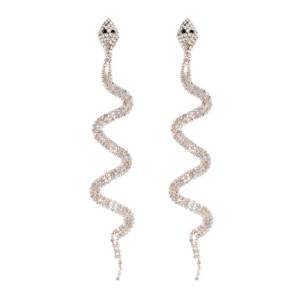 Rhinestone Snake Dangle Drop Post Earrings