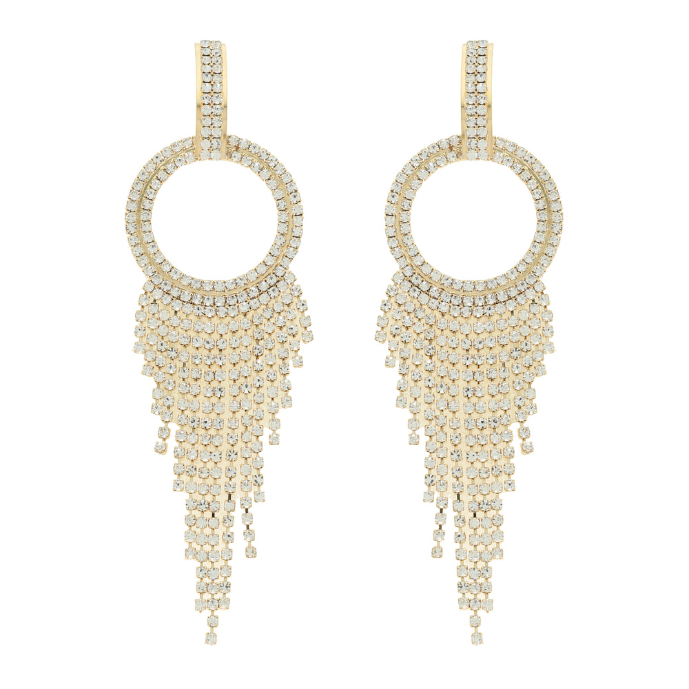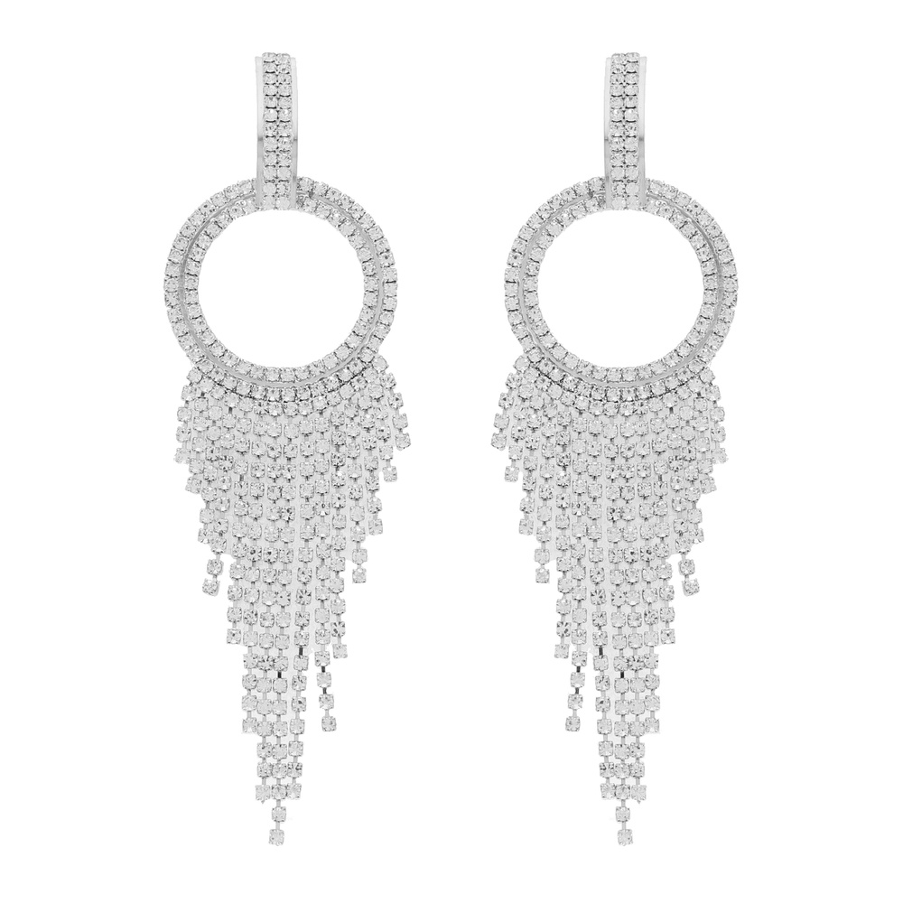 Open Circle Rhinestone Fishtail Tassel Earrings
