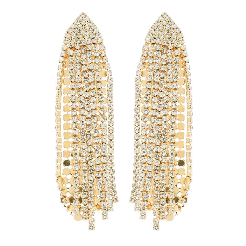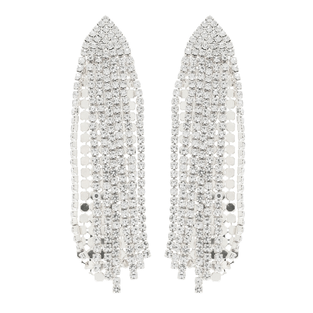 Crystal Rhinestone Metallic Mesh Tassel Earrings