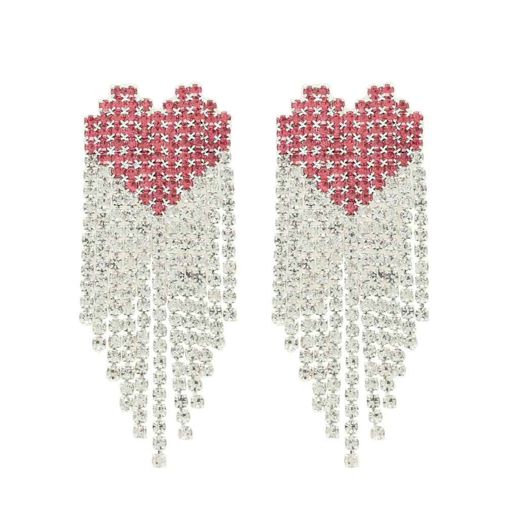 Valentine's Day Heart Rhinestone Tassel Earrings