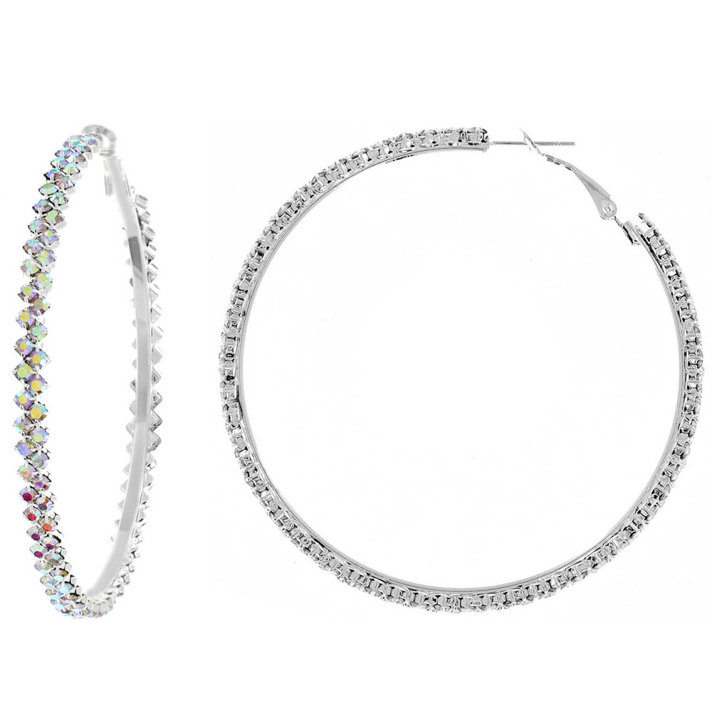60mm Large Lightweight 2 Line Rhinestone Pave Hoop Earrings