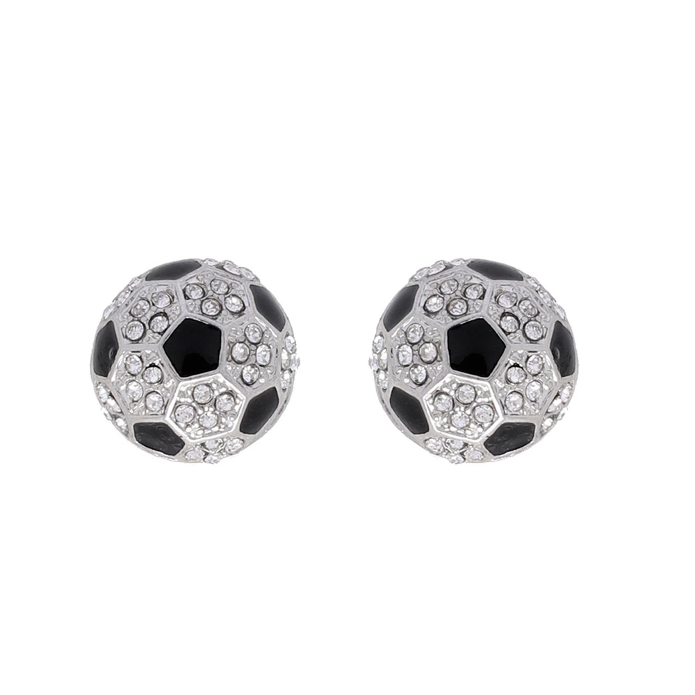 SOCCER GAME DAY CRYSTAL RHINESTONE JEWELED STUD EARRINGS IN SILVER TONE METAL