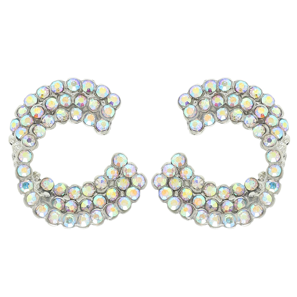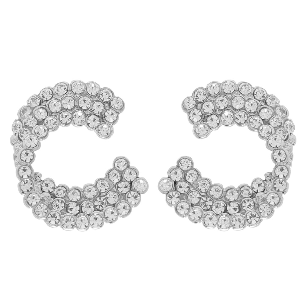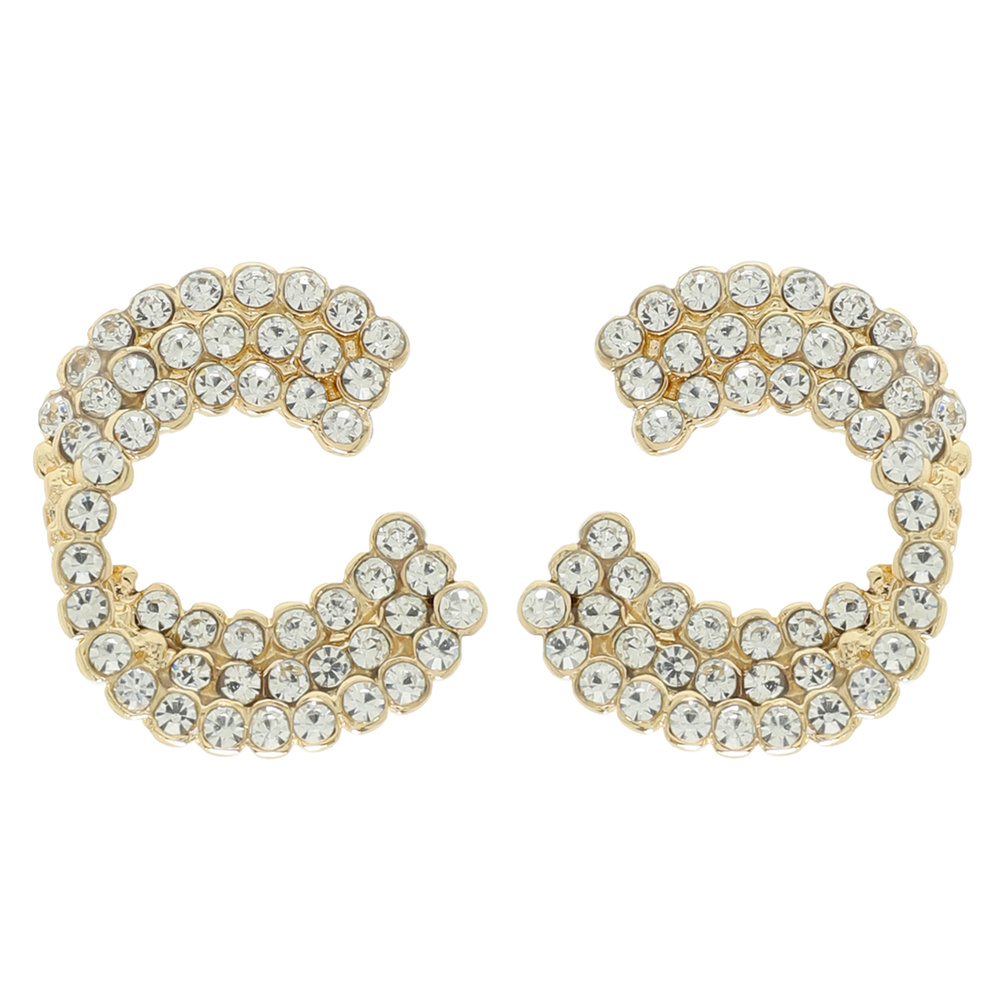 ROUND CUT RHINESTONE EMBELLISHED C-SHAPE STUD EARRINGS
