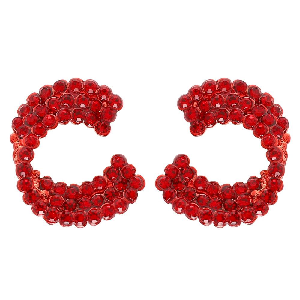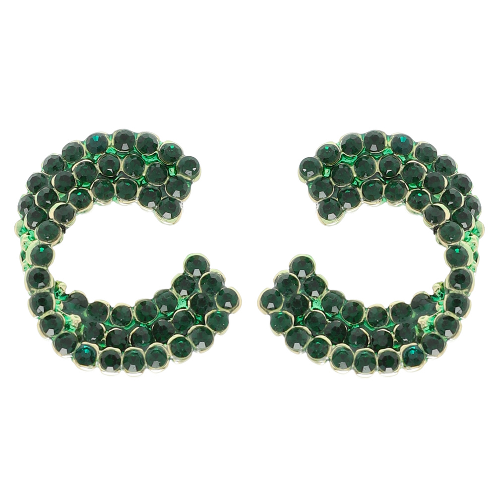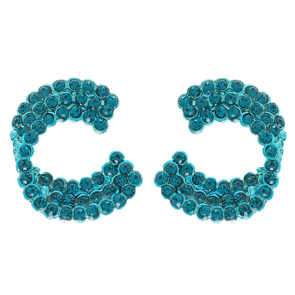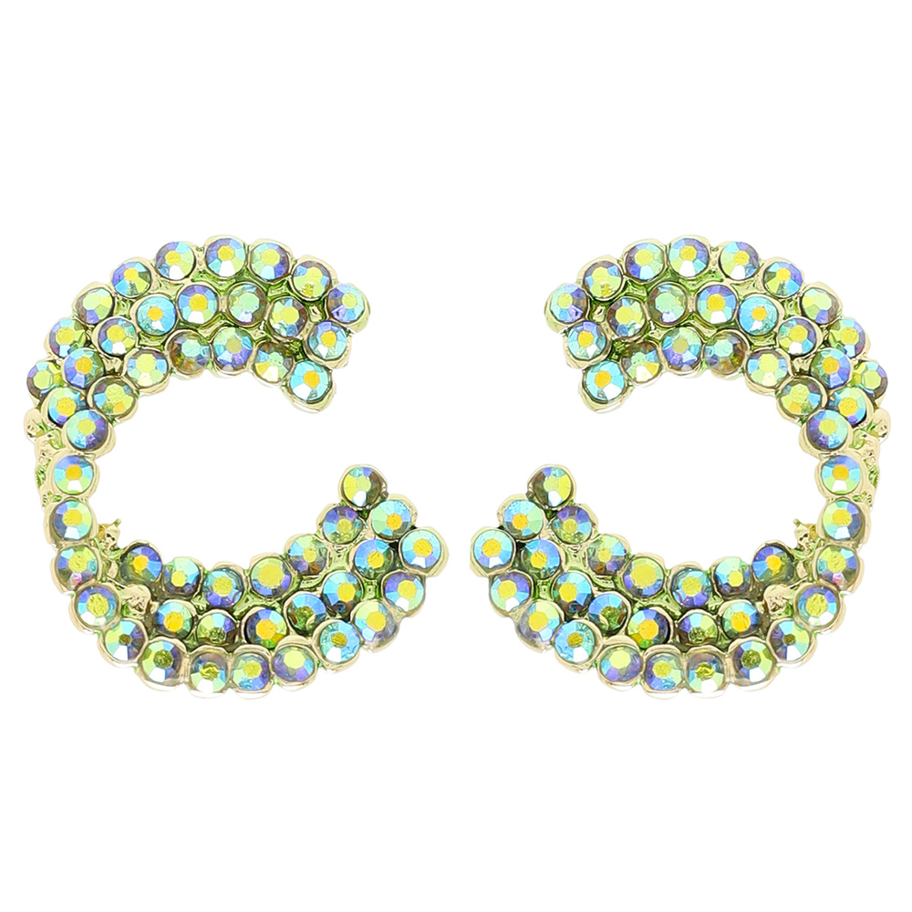 ROUND CUT RHINESTONE EMBELLISHED C-SHAPE STUD EARRINGS