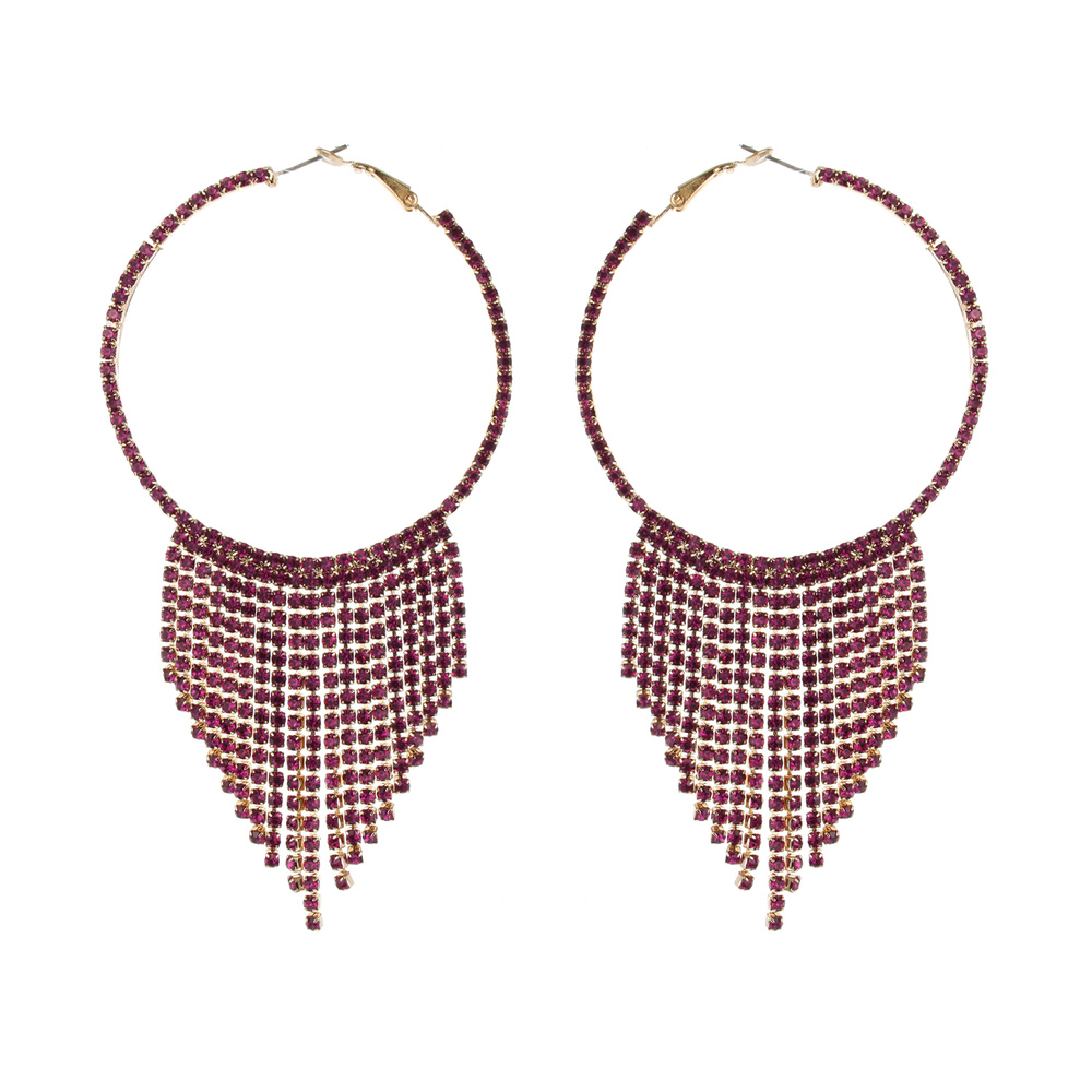 Thin Hoop Rhinestone Earring W/hanging Gems