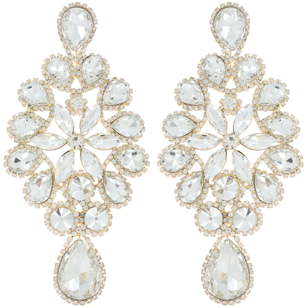 EVENING GLAM FLORAL CLUSTER CRYSTAL DROP EARRINGS