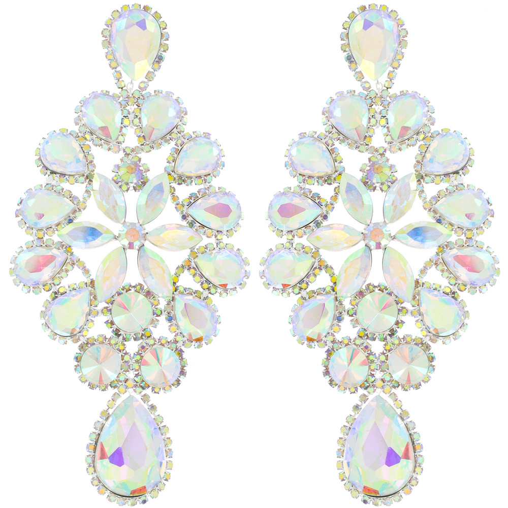 Evening Glam Floral Cluster Crystal Drop Earrings