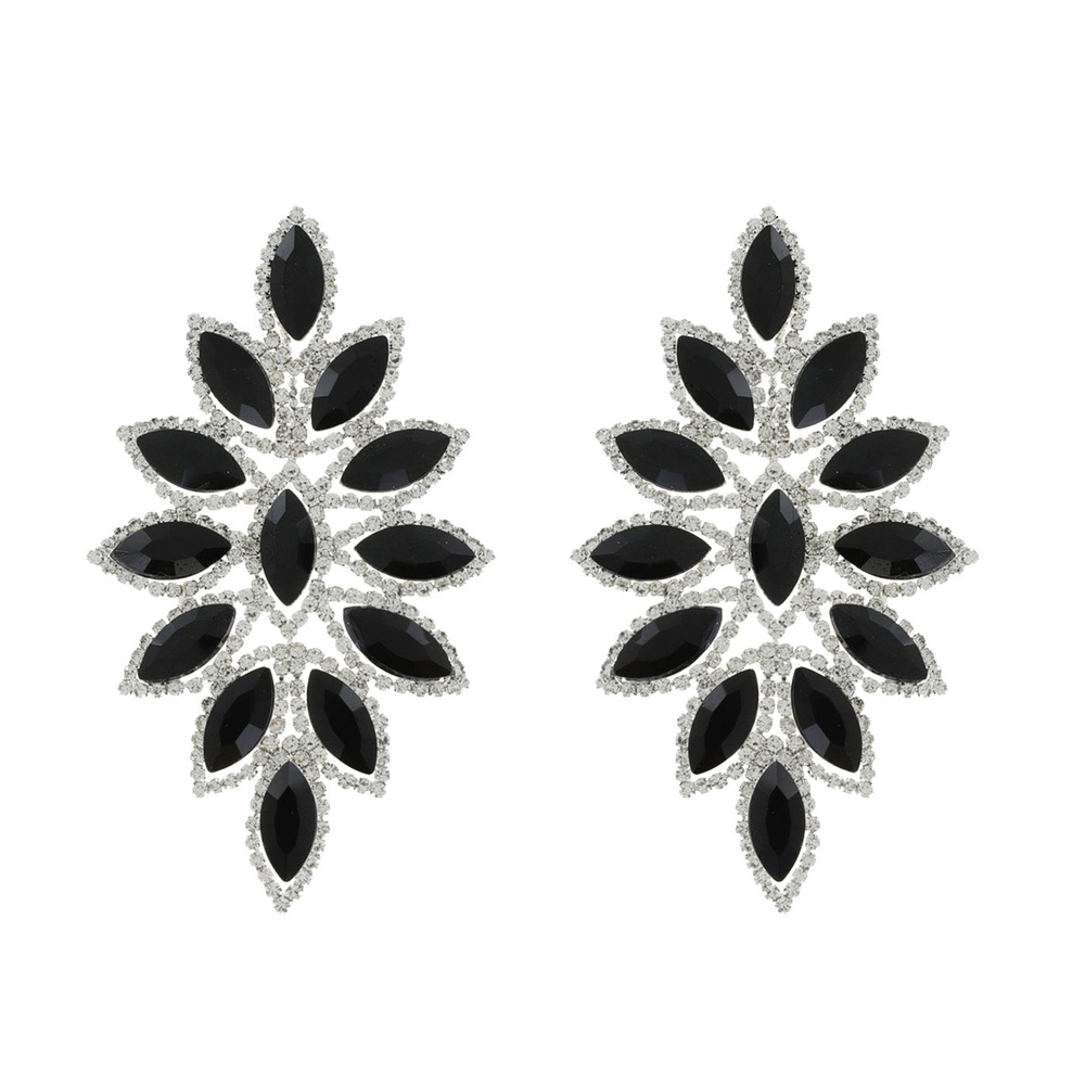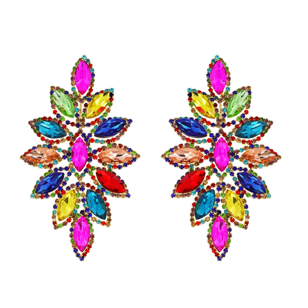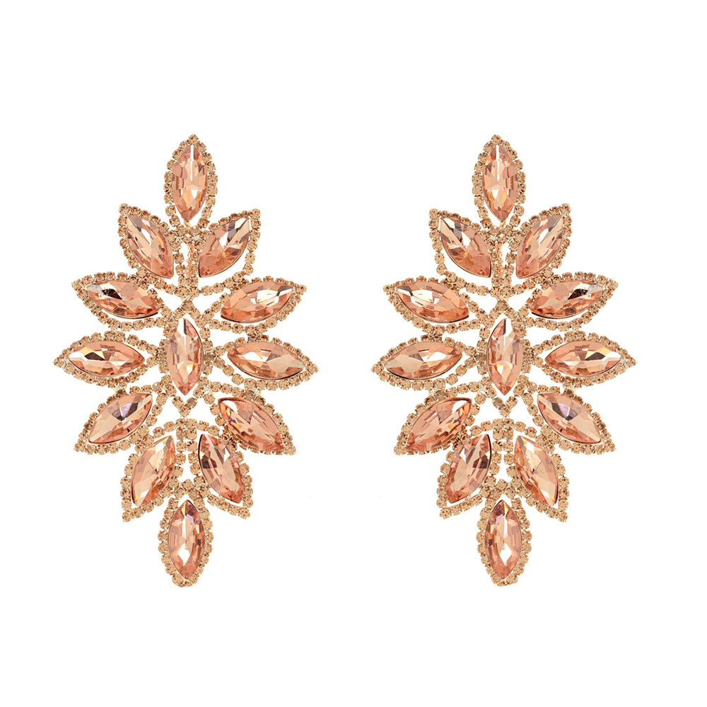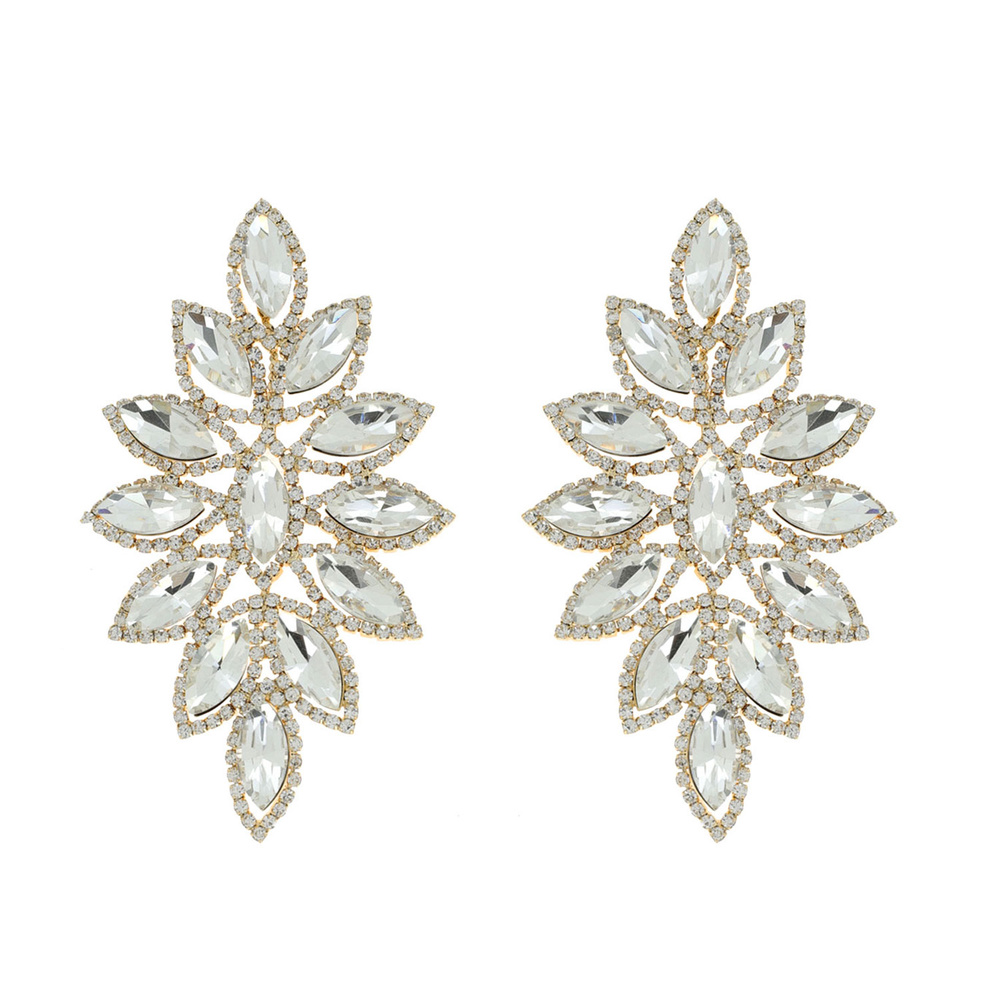 CRYSTAL CLUSTER LEAF SHAPED LONG DROP EARRINGS