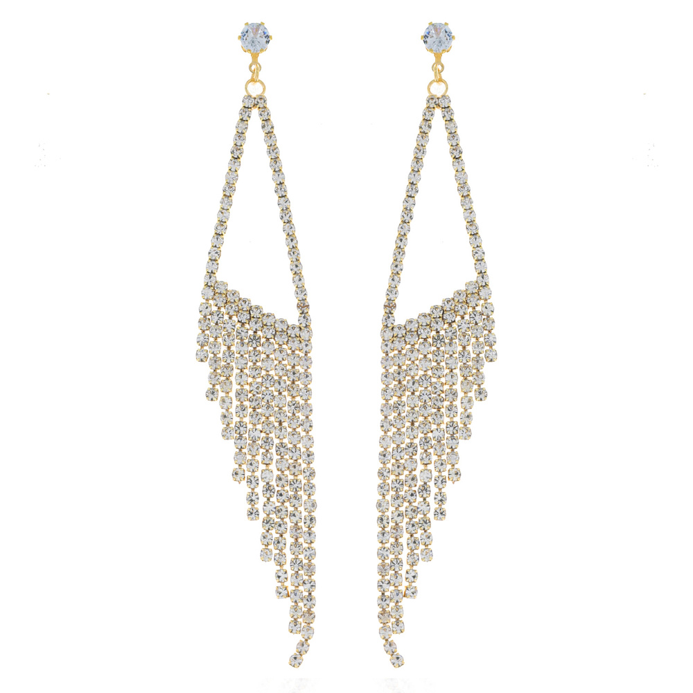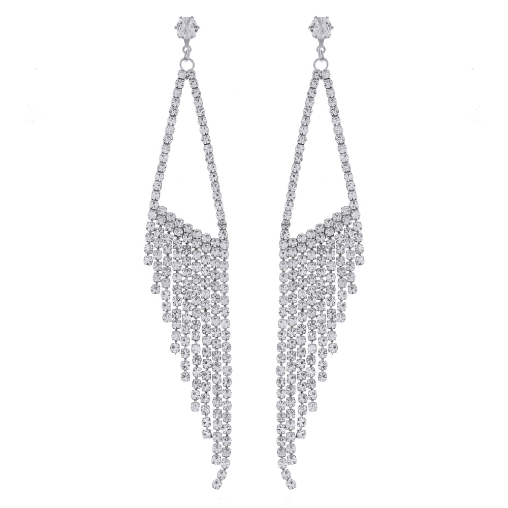 Crystal Rhinestone Open Triangle Tassel Dangle And Drop Earrings