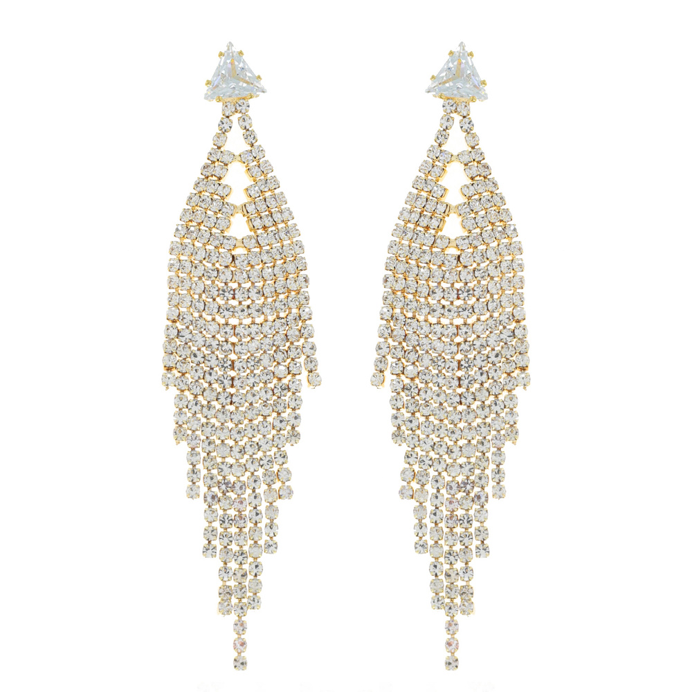 Crystal Rhinestone Diamond Shaped Long Drop Tassel Earrings