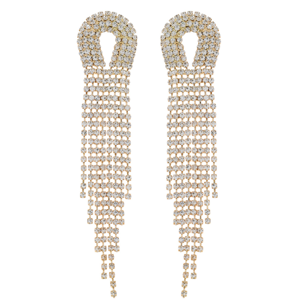 Crystal Rhinestone Arch Shaped Long Drop Tassel Earrings