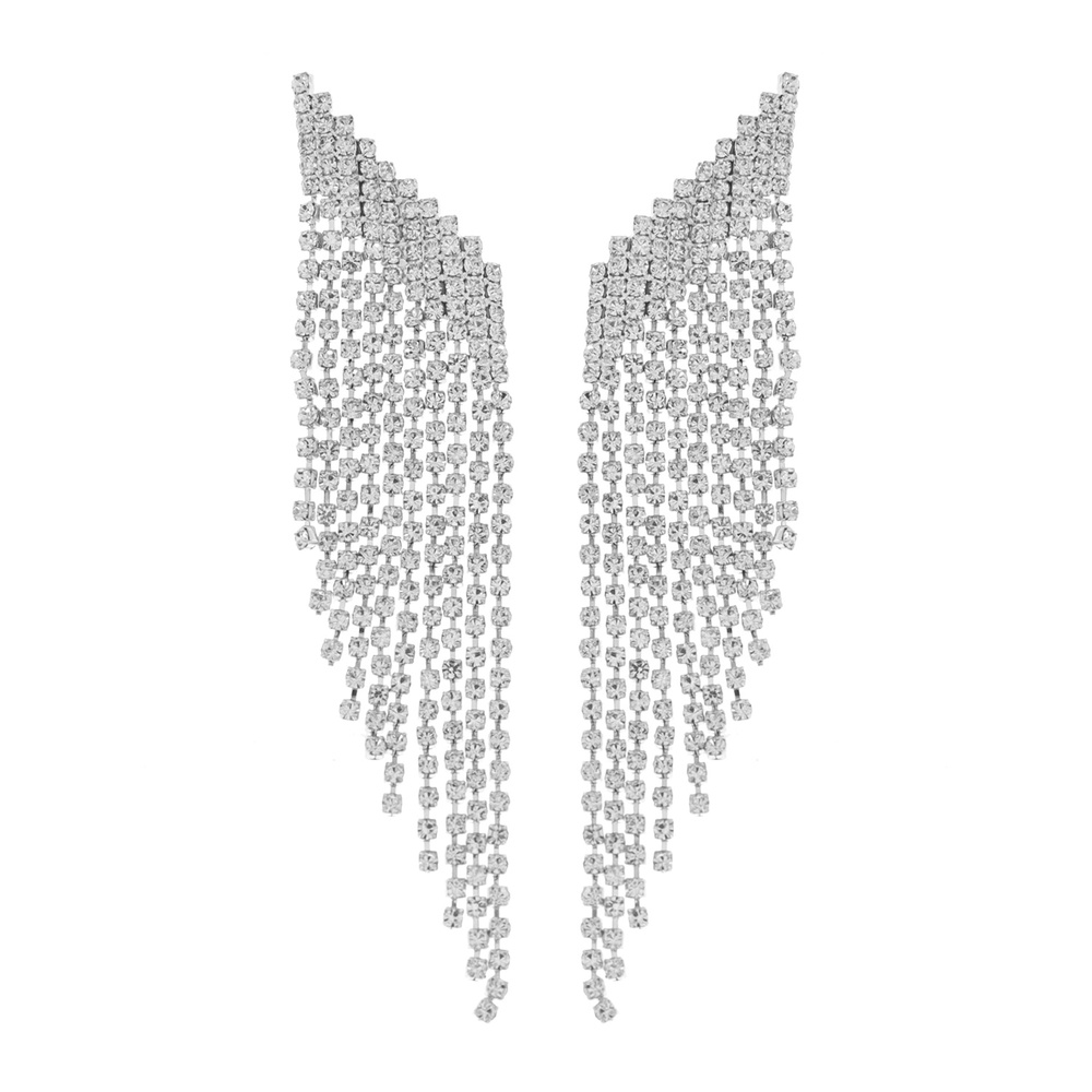CRYSTAL RHINESTONE DIAGONAL LONG DROP TASSEL EARRINGS