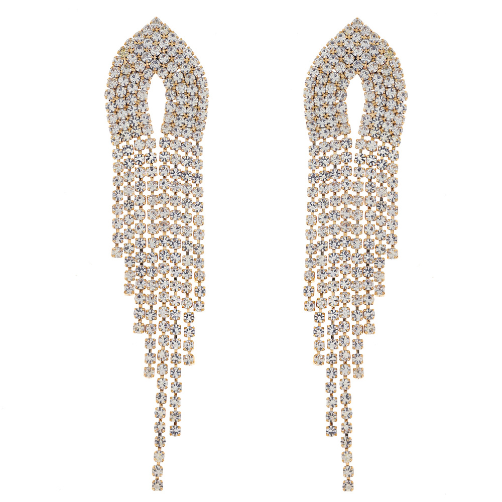 Teardrop Arch Tassel Long Drop Crystal Earrings