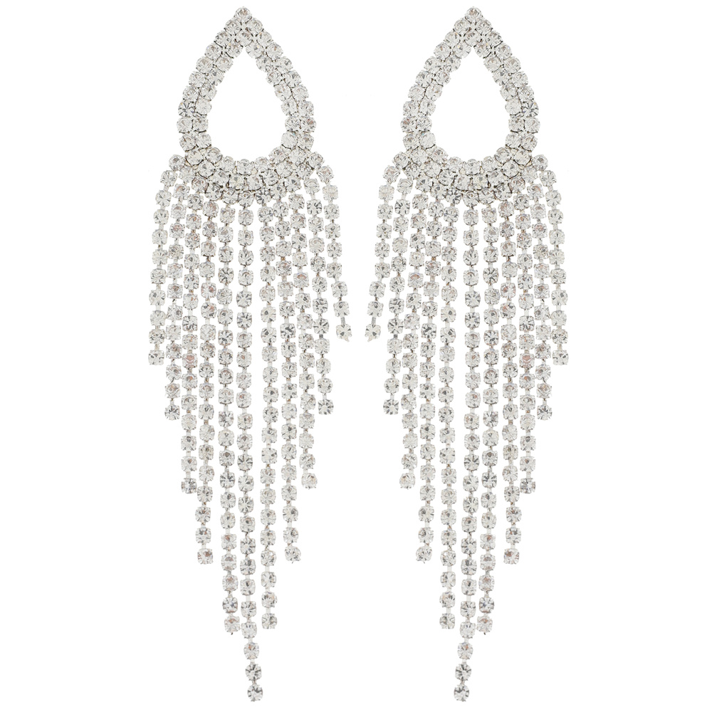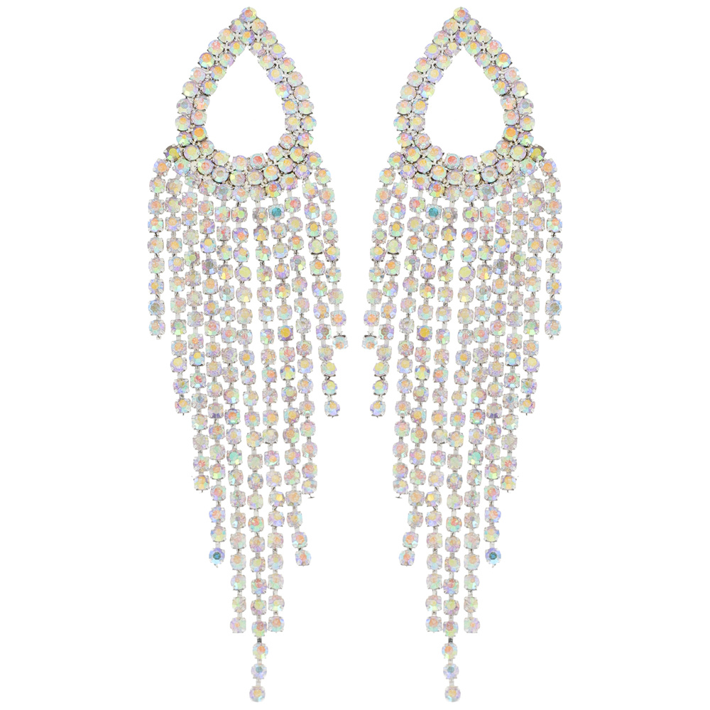 OPEN TEARDROP TASSEL LONG DROP CRYSTAL EARRINGS