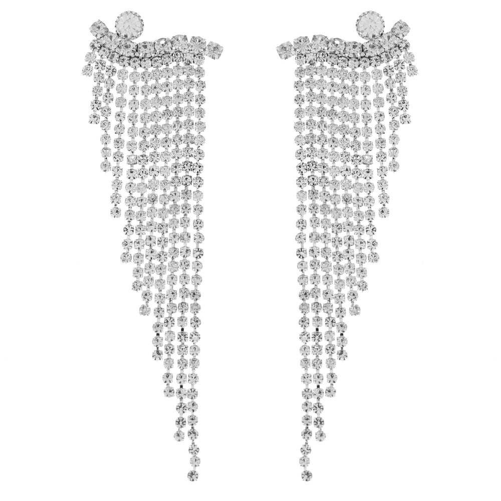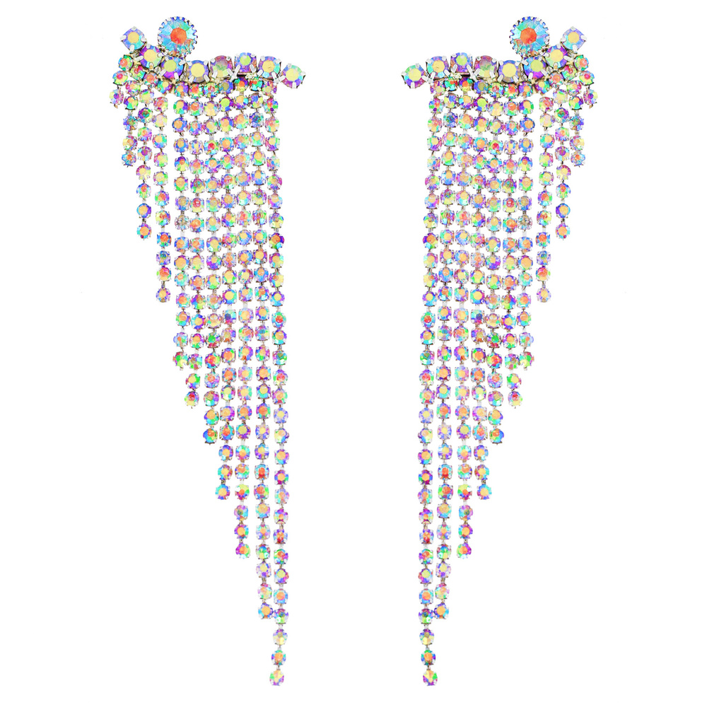 WAVE TASSEL LONG DROP CRYSTAL EARRINGS