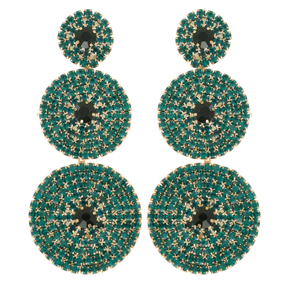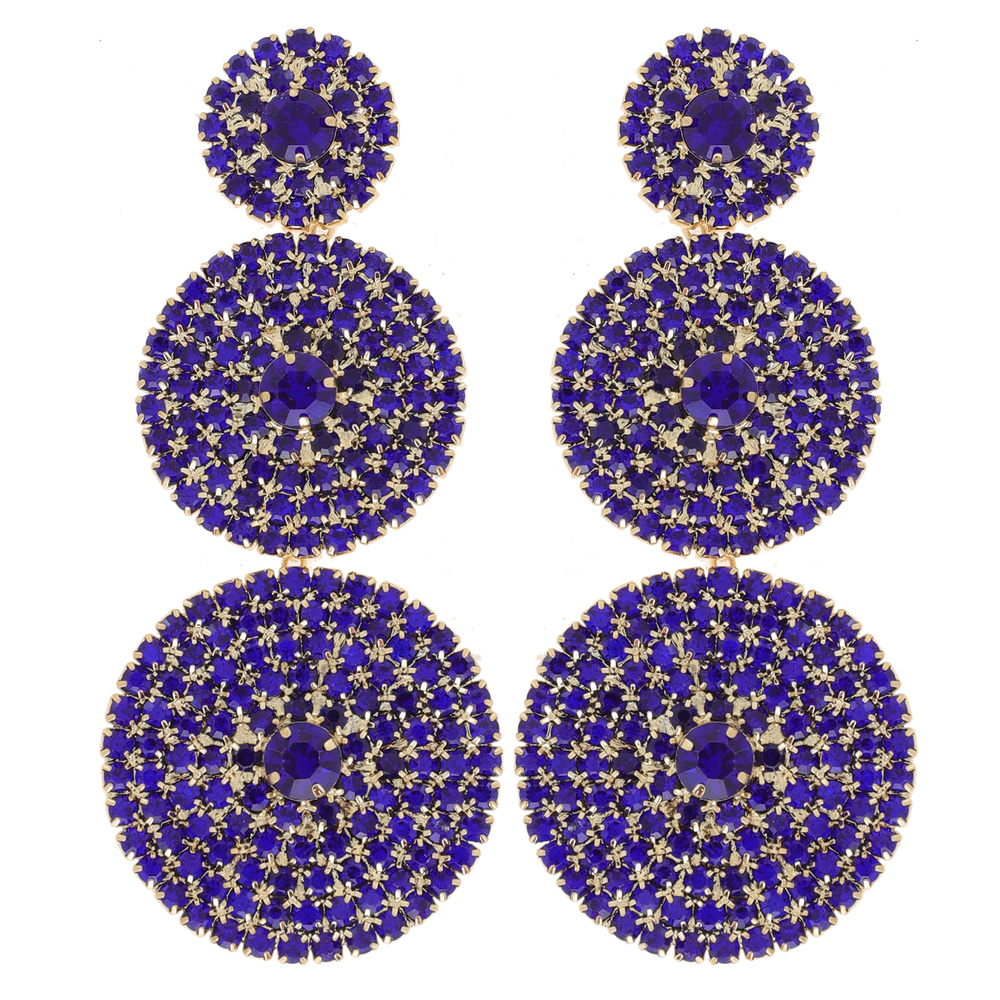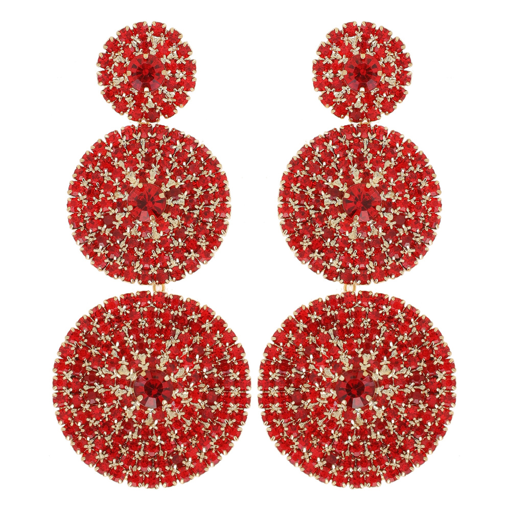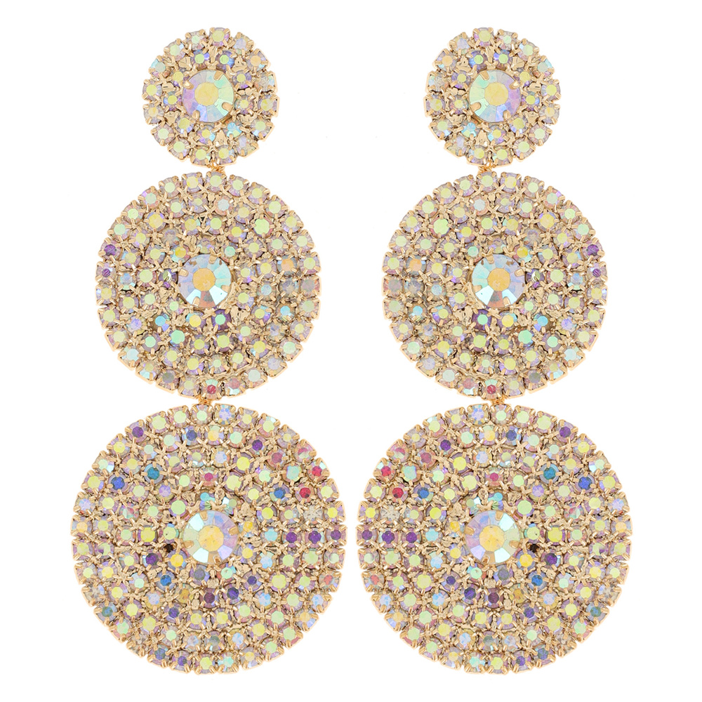 3-tier Crystal Rhinestone Disc Long Drop Earrings
