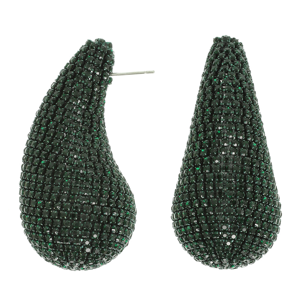 RHINESTONE PAVE CHUNKY TEARDROP DOME POST EARRINGS
