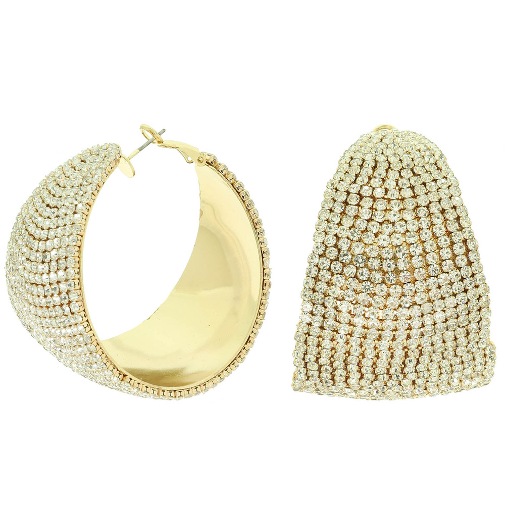 RHINESTONE PAVE CHUNKY HUGGIE HOOP EARRINGS WITH OMEGA BACK CLOSURE