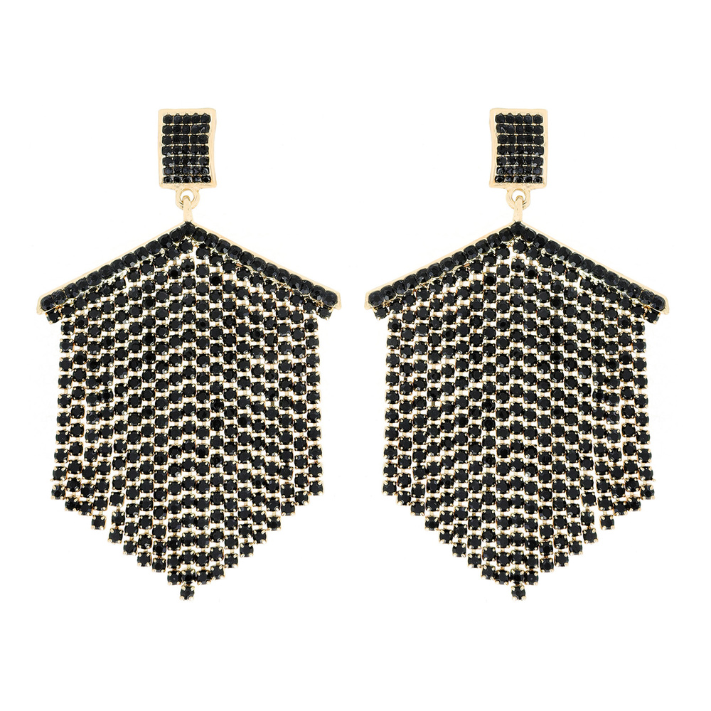 CRYSTAL RHINESTONE FRINGE DROP POST EARRINGS