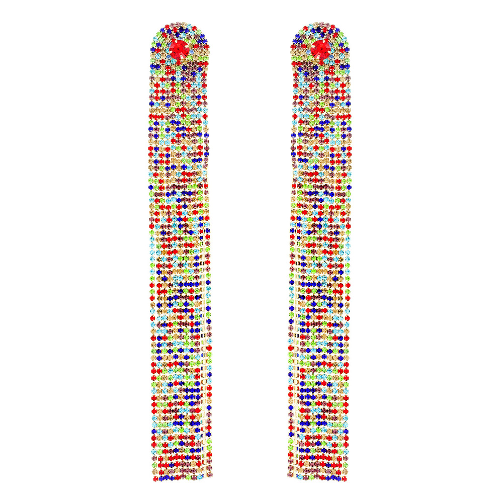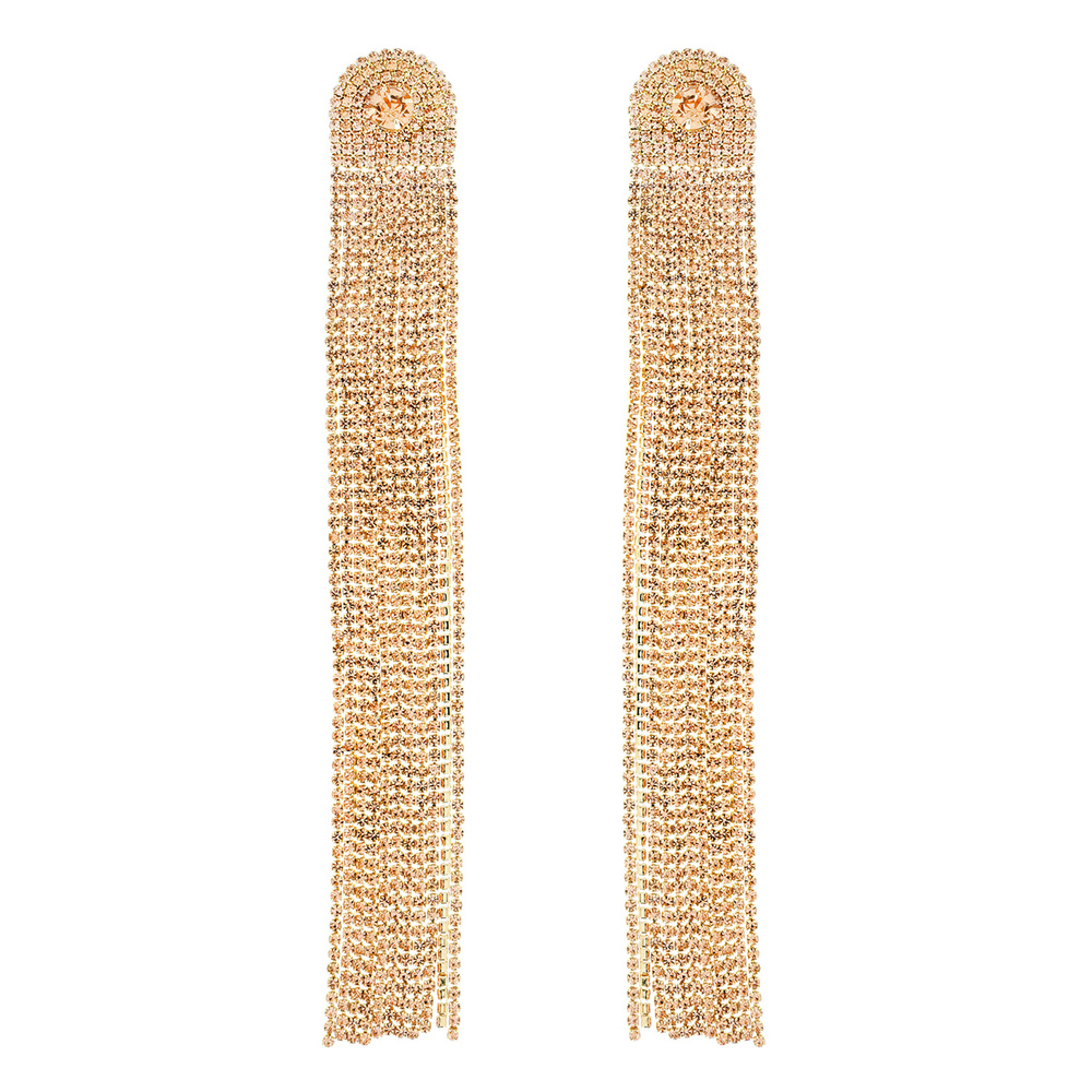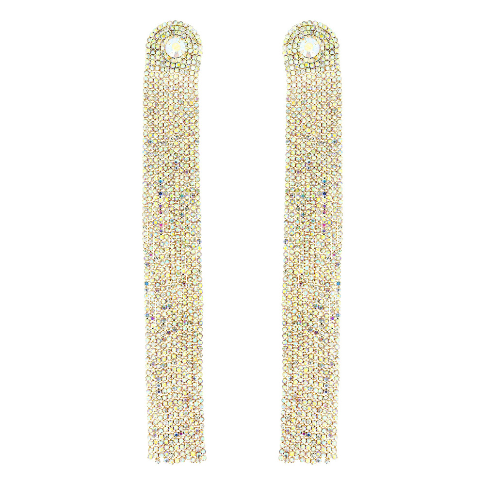 CRYSTAL RHINESTONE FRINGE DROP EARRINGS