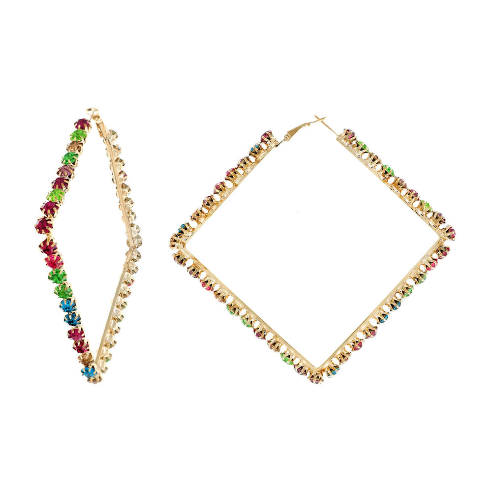 80MM CRYSTAL RHINESTONE SQUARE BIG LARGE HOOP EARRINGS
