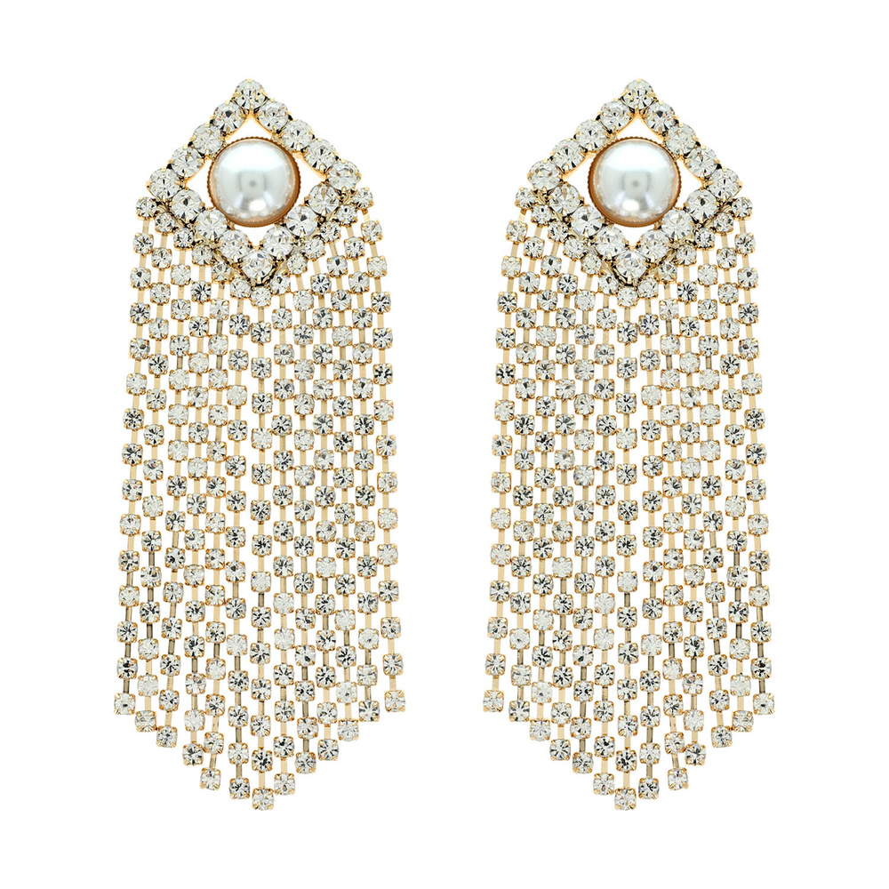 Dressy Elegant Occasion Pearl And Crystal Rhinestone Dangle Fringe Earrings