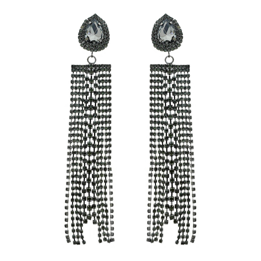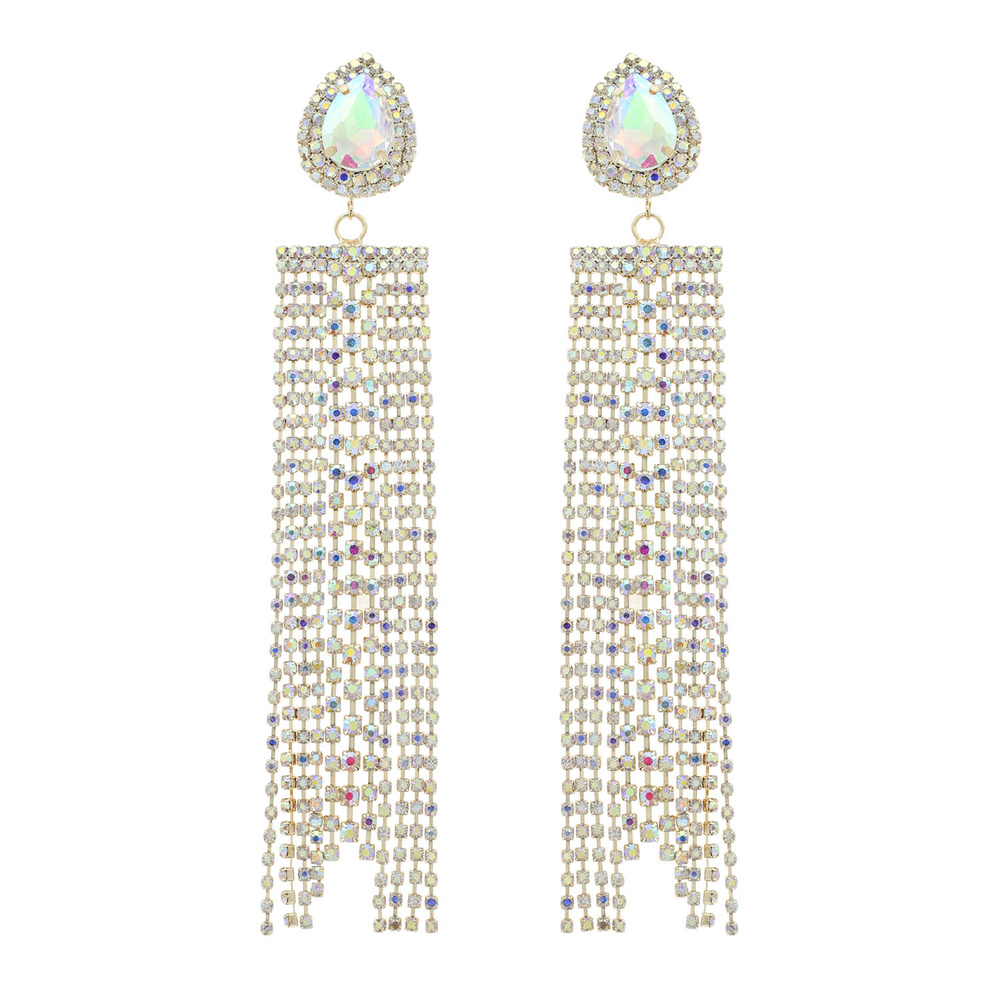 Teardrop Gem Rhinestone Tassel Long Drop Earrings