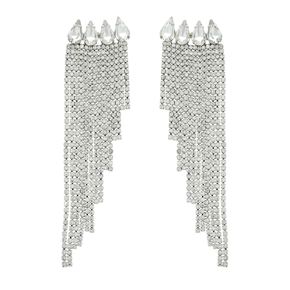 Fashion Rhinestone Tassel Drop Earrings With Teardrop Crystal Gemstones