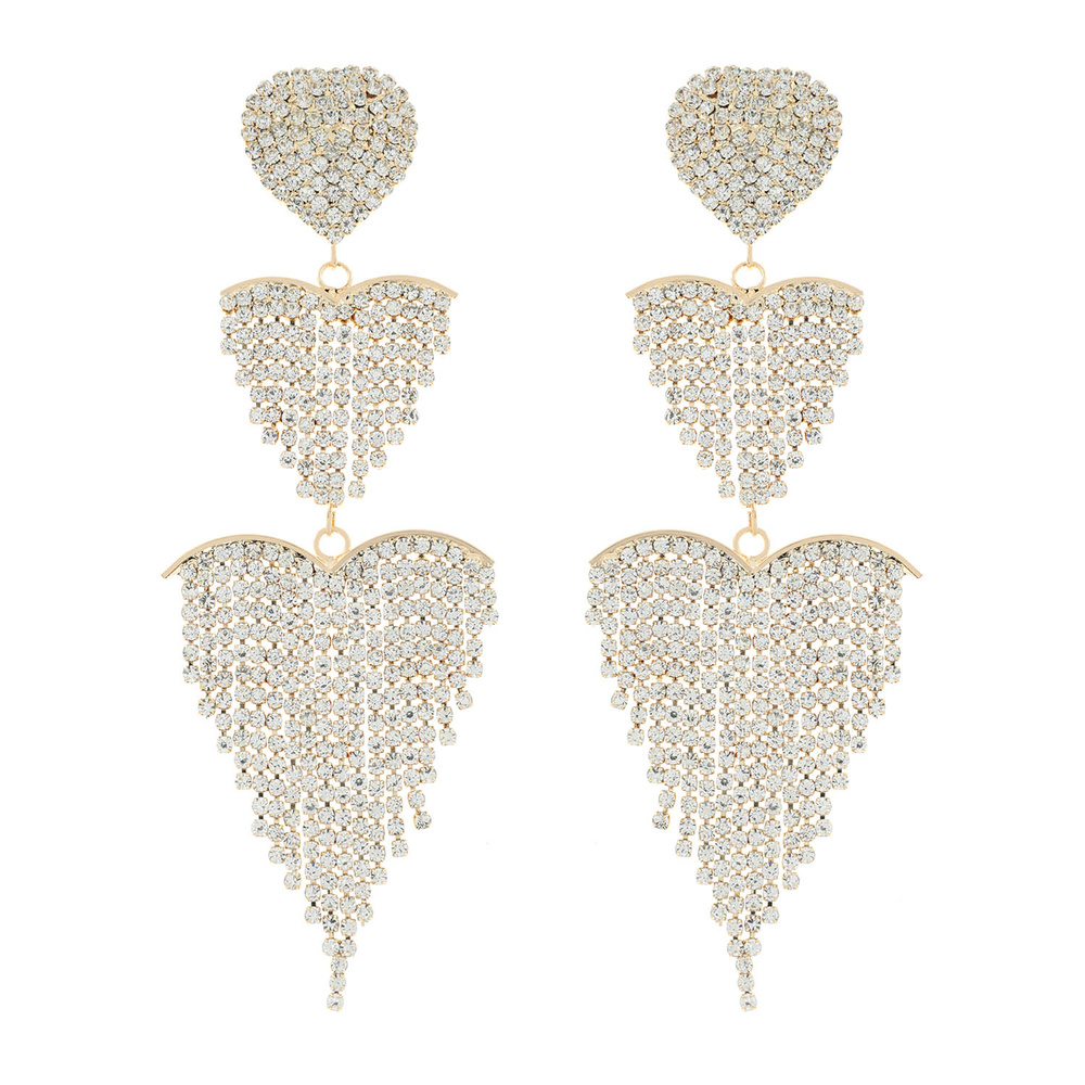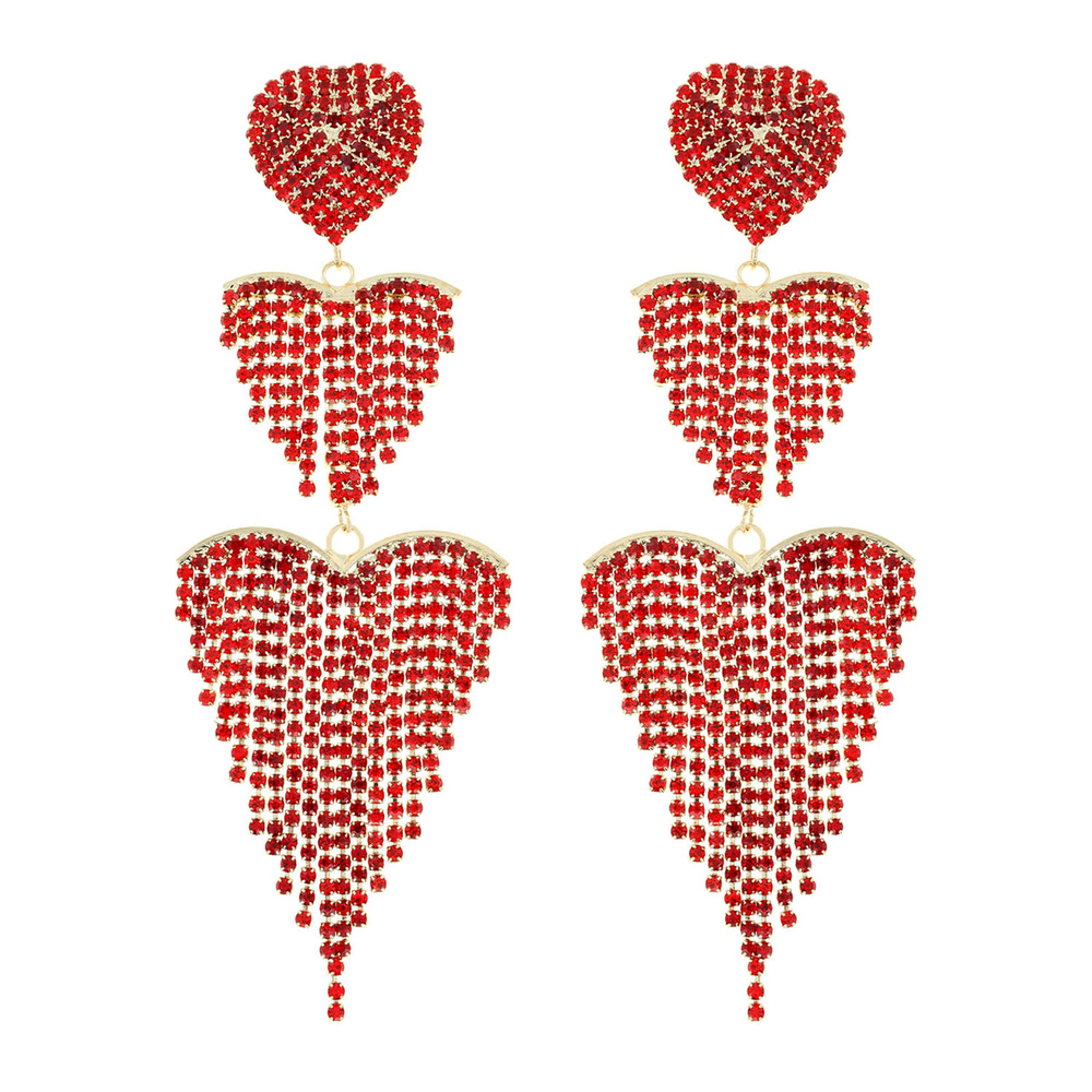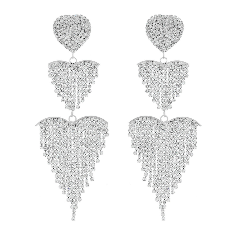 Crystal Rhinestone Heart Tassel Fringe Drop Earrings